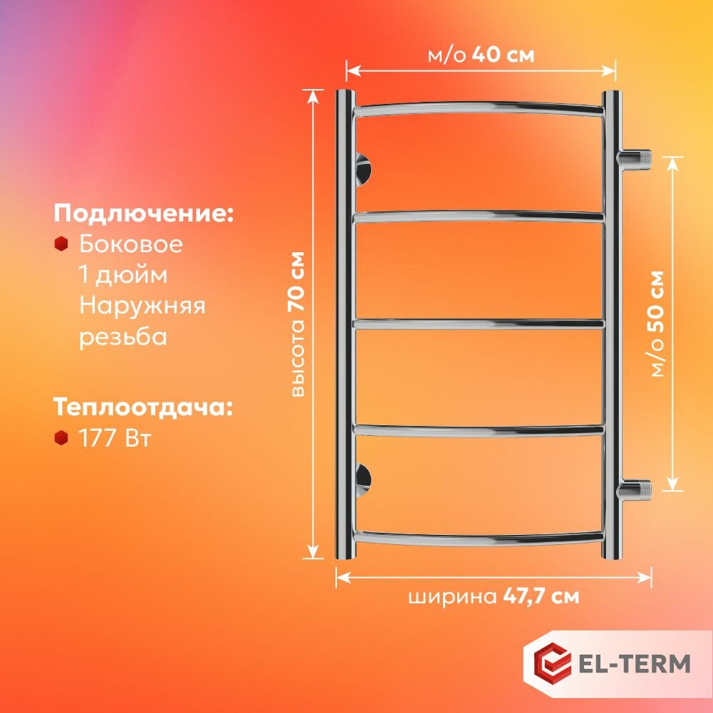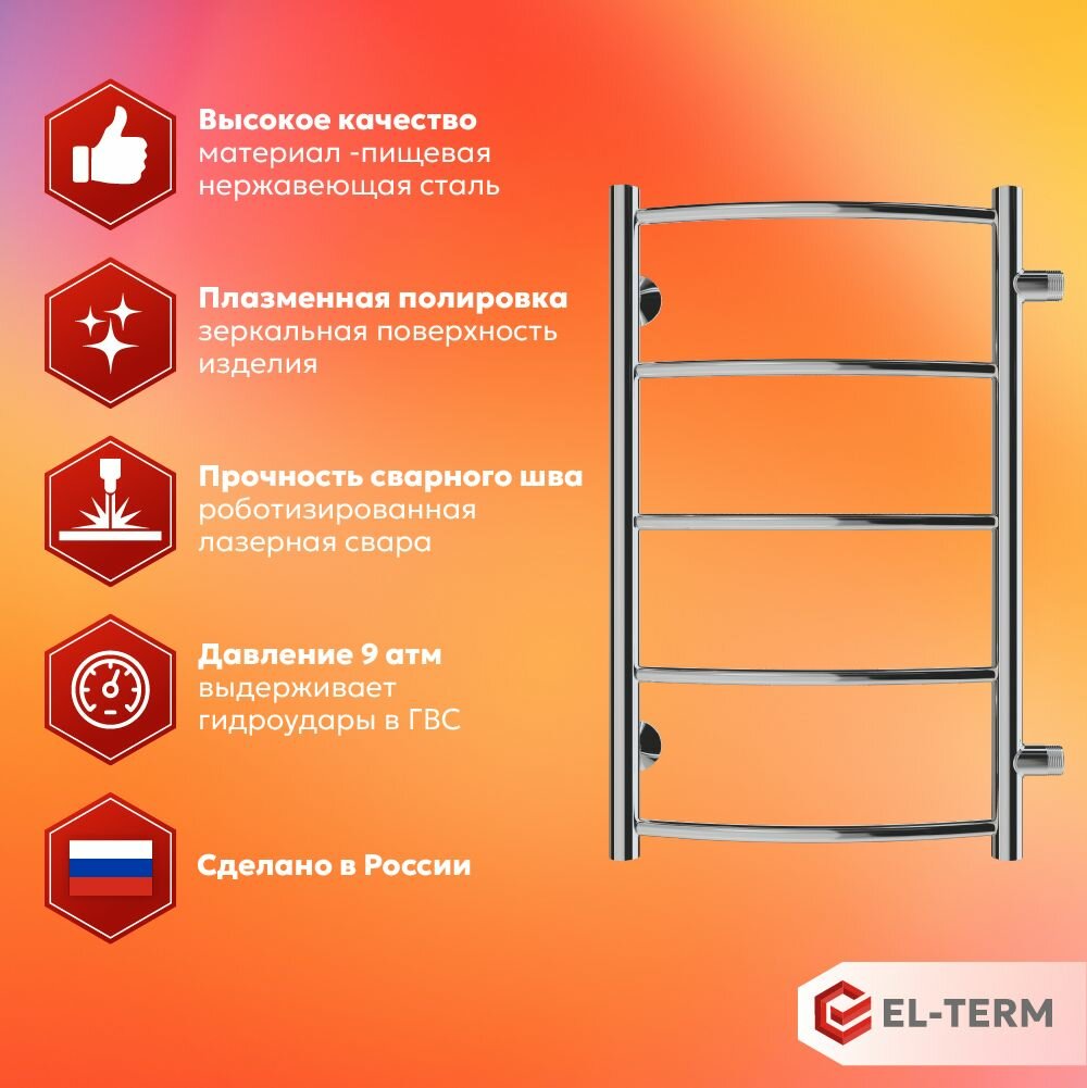 10 цен на Полотенцесушитель водяной EL-TERM (Эл-Терм) грас 400х700 боковое подключение 500 мм, нержавеющая сталь, гарантия 10 ЛЕТ/ водяной полотенцесушитель