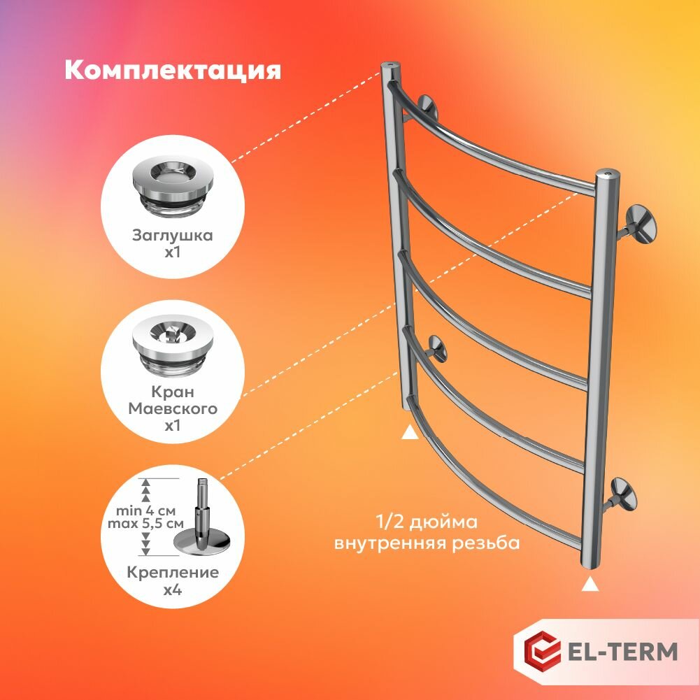 Отзывы на Полотенцесушитель водяной EL-TERM (Эл-Терм) грас 500х700 мм, нижнее подключение, нержавеющая сталь, гарантия 10 ЛЕТ/ водяной полотенцесушитель