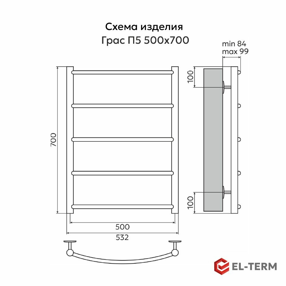 Полотенцесушитель водяной EL-TERM (Эл-Терм) грас 500х700 боковое подключение 500 мм, нержавеющая сталь, гарантия 10 ЛЕТ/ водяной полотенцесушитель 8 882 ₽