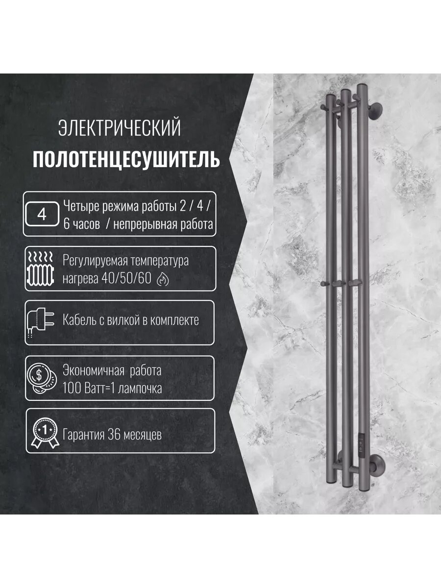 Полотенцесушитель электрический Графит Маргроид Вид Inaro-3 120x12 (серый, оружейная сталь). Кабель с вилкой 90 см. информация:
