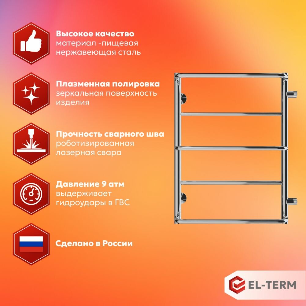 Отзывы на Полотенцесушитель водяной EL-TERM (Эл-Терм) сона 500х700 боковое подключение 500 мм, нержавеющая сталь, гарантия 10 ЛЕТ/ водяной полотенцесушитель