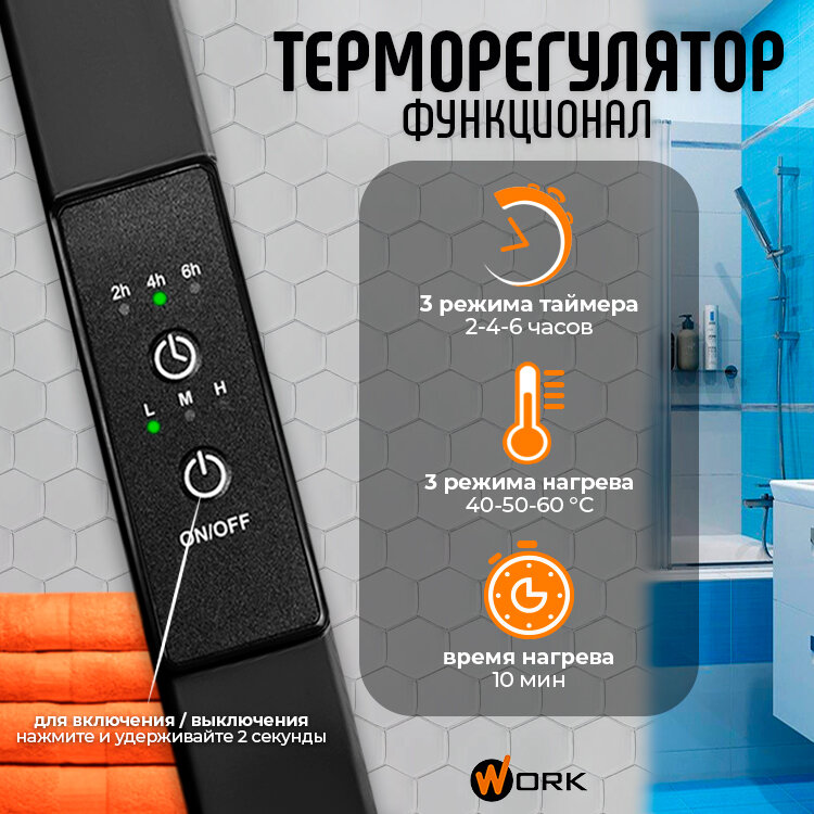 Полотенцесушитель электрический для ванной WORK 60х40 графит матовый информация: