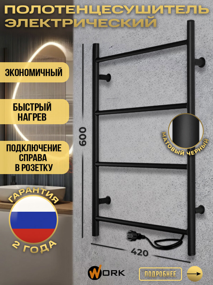 10 цен на Полотенцесушитель электрический для ванной WORK 60х40 черный