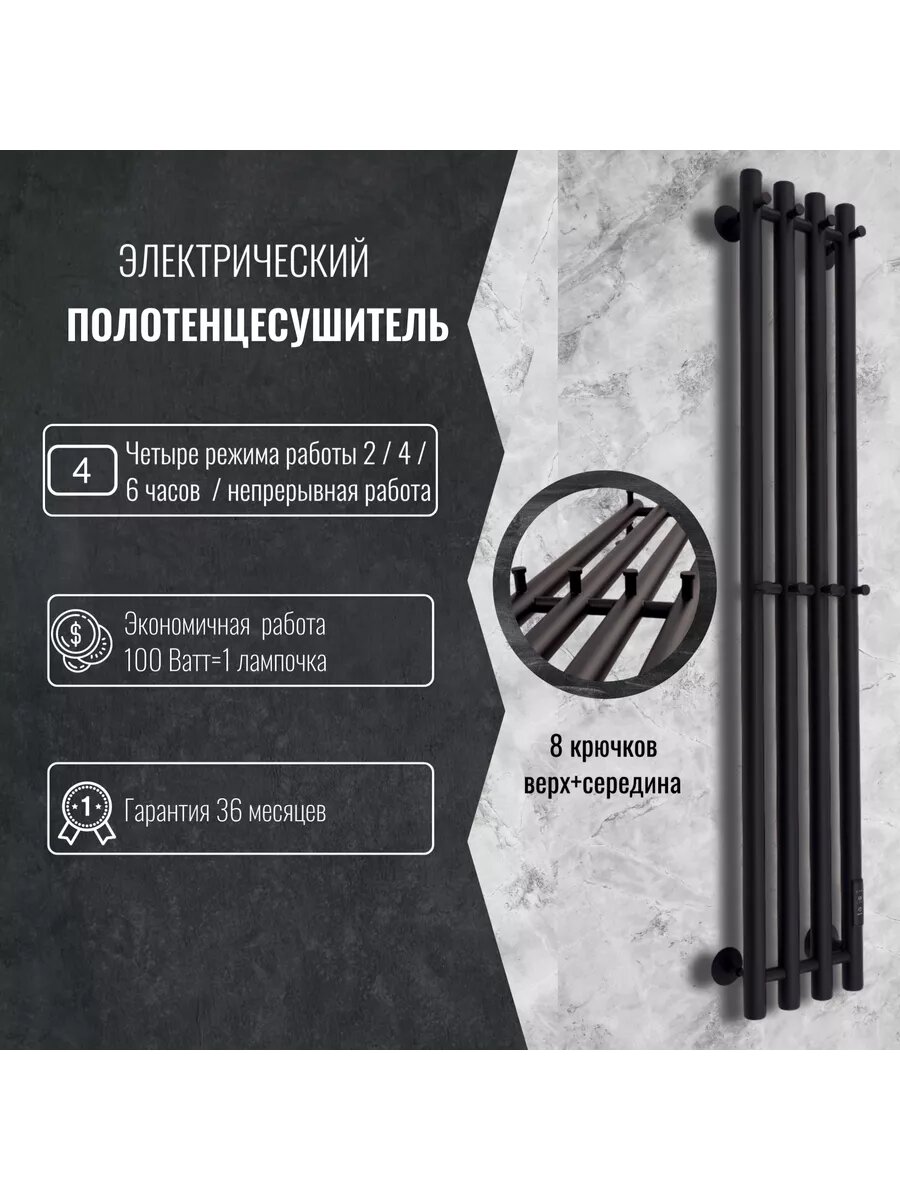 Отзывы на Полотенцесушитель электрический Черный матовый Маргроид 120x18