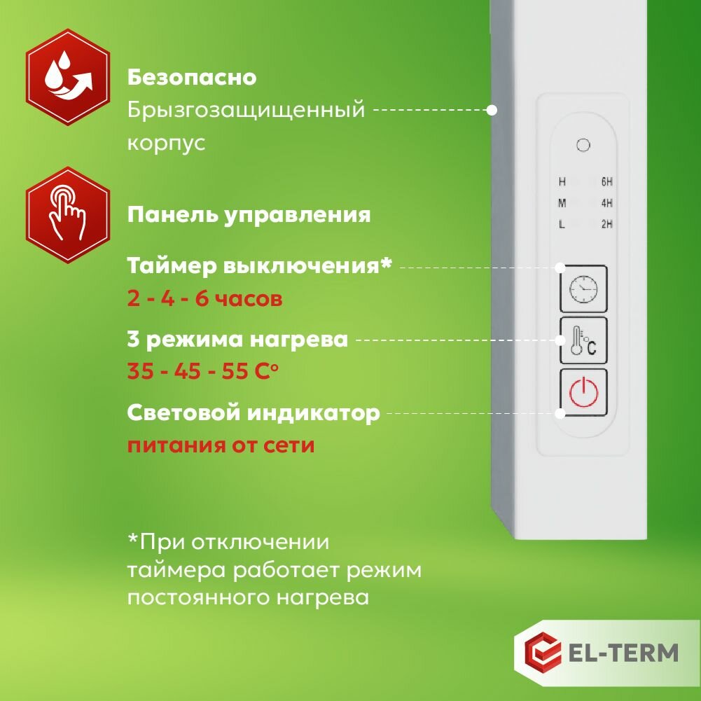 Отзывы на Полотенцесушитель электрический белый EL-TERM (Эл-Терм) рейн 500х900 мм, гарантия 2 года/ Электрический полотенцесушитель с терморегулятором