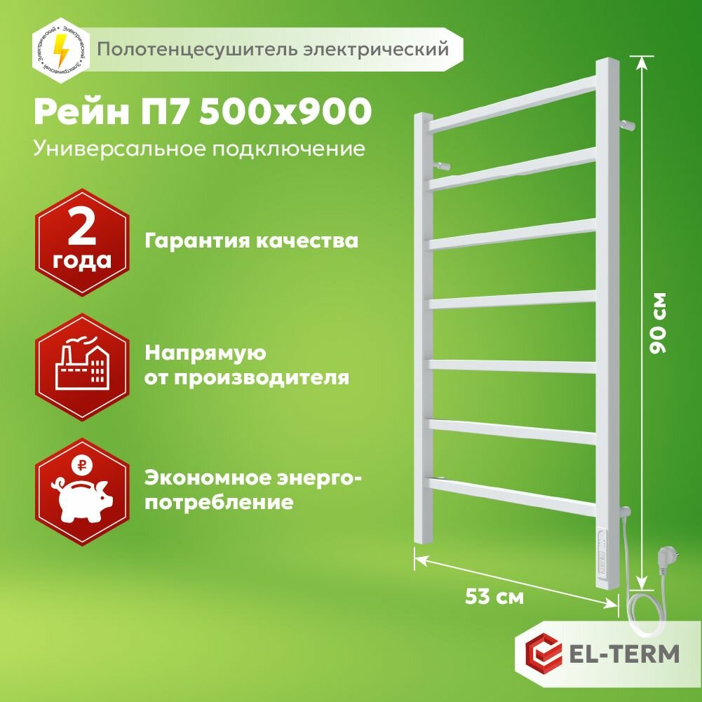 10 цен на Полотенцесушитель электрический белый EL-TERM (Эл-Терм) рейн 500х900 мм, гарантия 2 года/ Электрический полотенцесушитель с терморегулятором