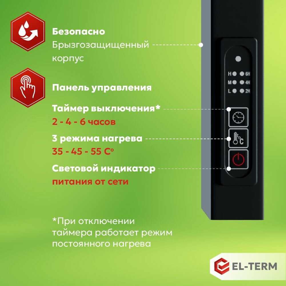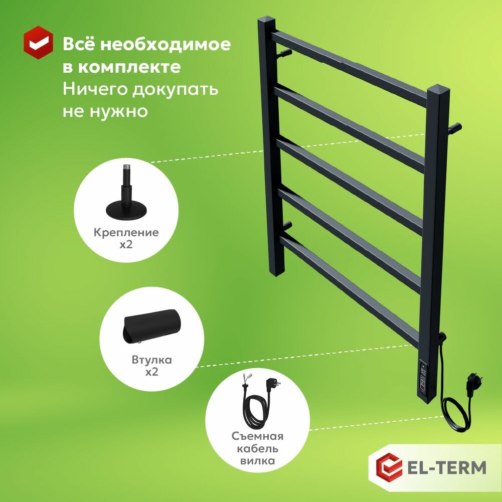 Полотенцесушитель электрический черный EL-TERM (Эл-Терм) рейн 500х700 мм, гарантия 2 года/ Электрический полотенцесушитель с терморегулятором информация: