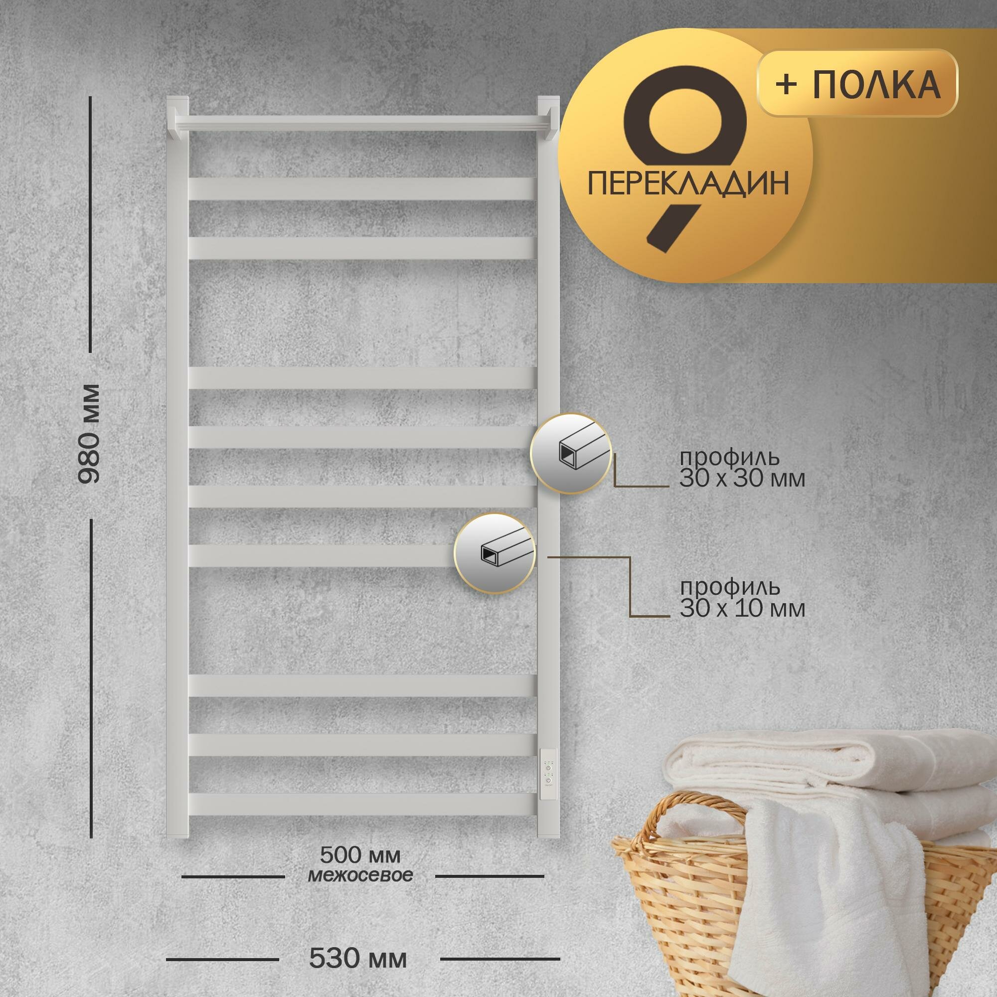 TERMINUS Полотенцесушитель электрический Terminus Хендрикс П6 500x596, ТЭН HT-1 300W, левый/правый