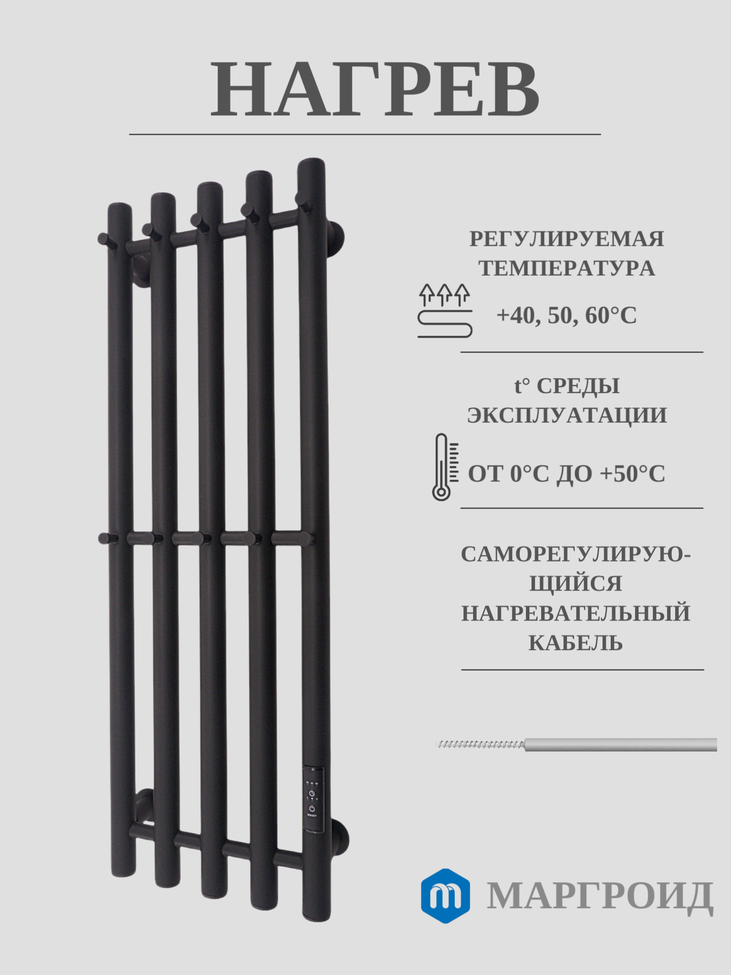 Полотенцесушитель электрический Черный матовый Маргроид Вид Inaro-5 80x24. Кабель с вилкой 90 см. информация: