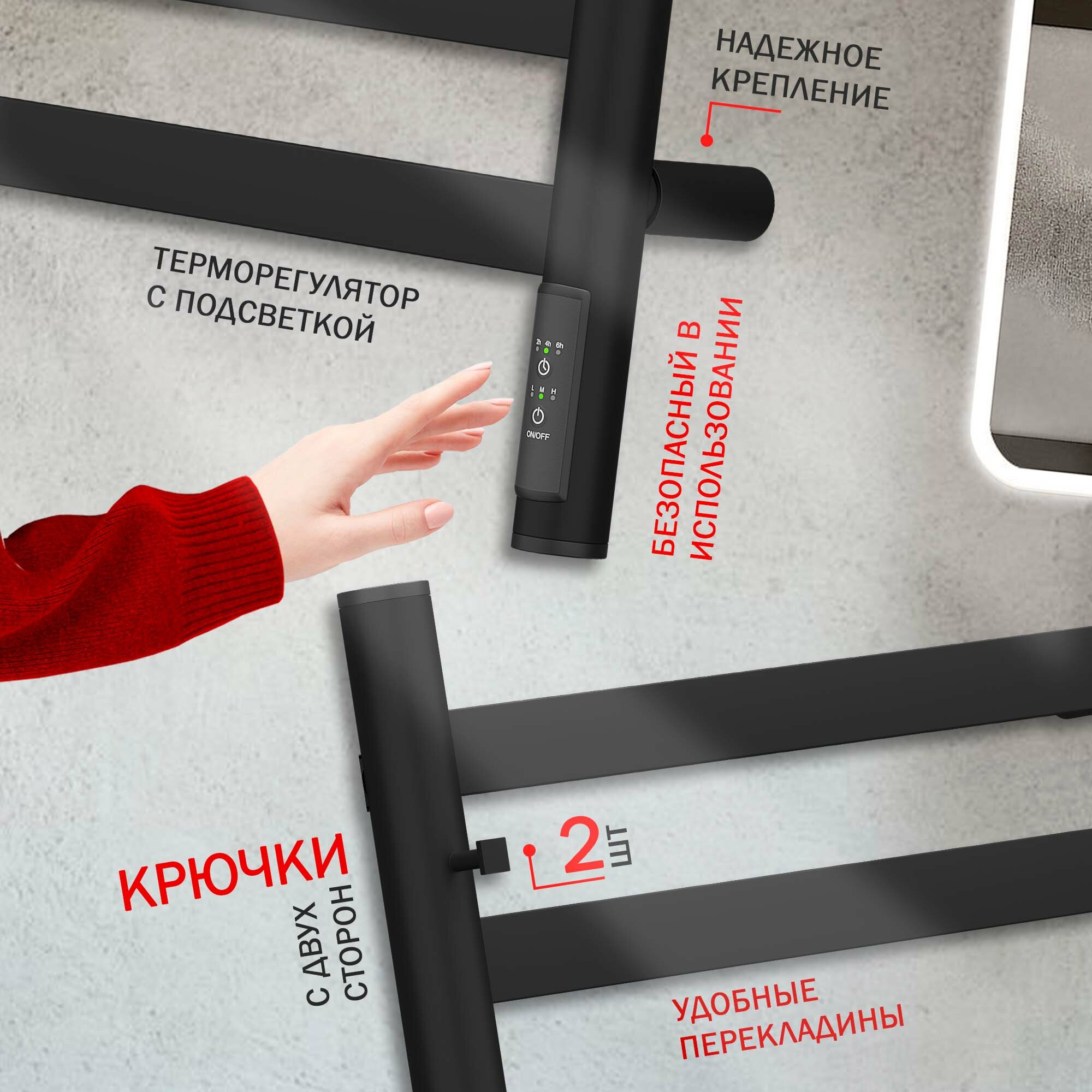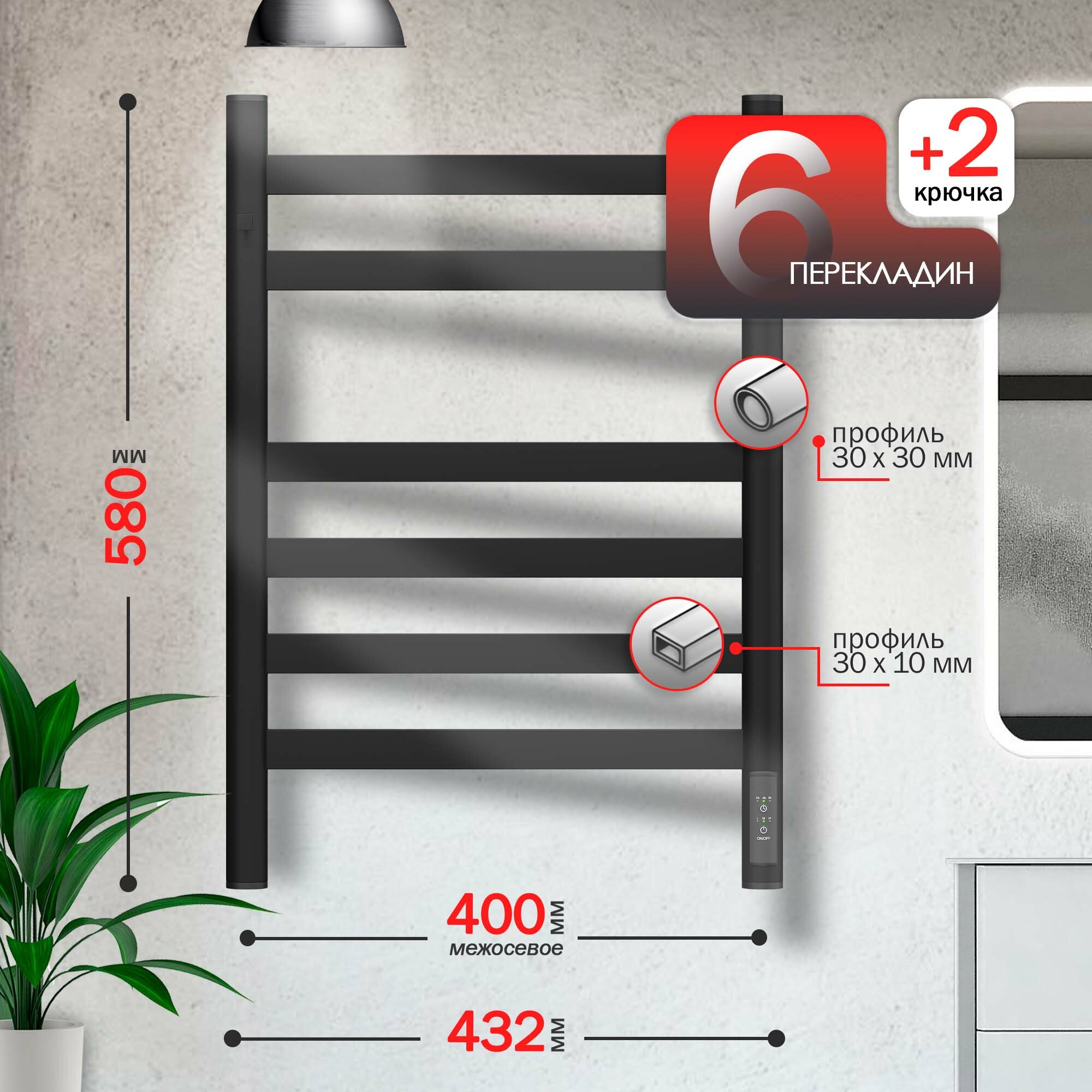 Полотенцесушитель электрический Маргроид В10 30х80, таймер, черный матовый