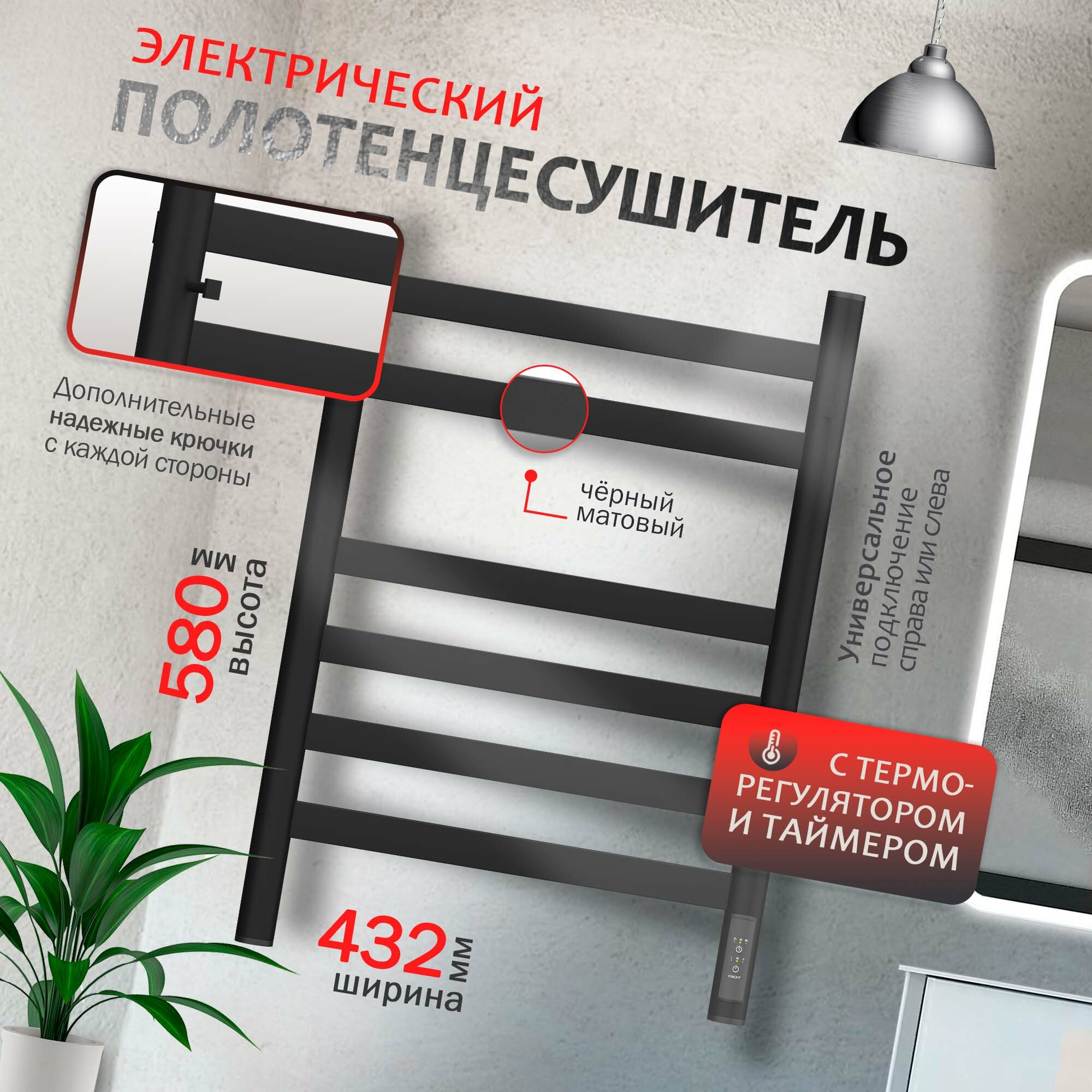 10 цен на Полотенцесушитель электрический Point Ophite PNOH846KB П6 400x580 с крючками, диммер справа, черный