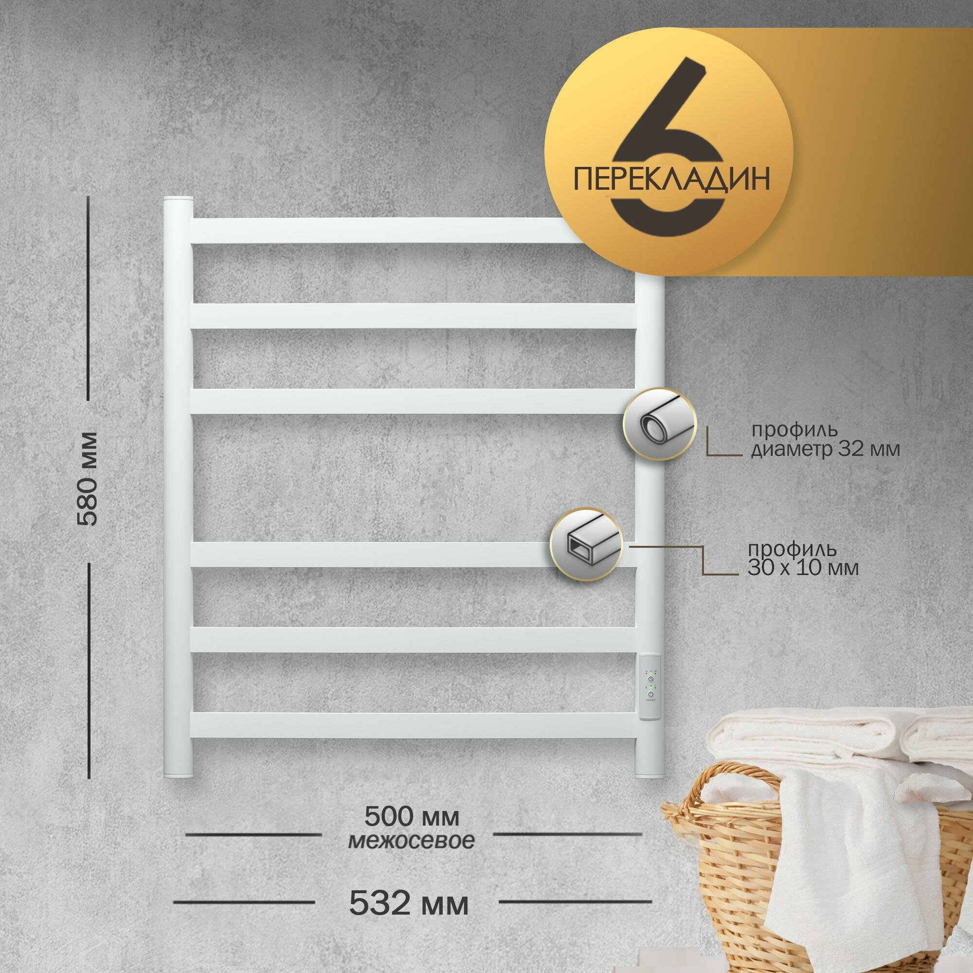 TERMINUS Полотенцесушитель электрический Terminus Хендрикс П6 500x596, ТЭН HT-1 300W, левый/правый