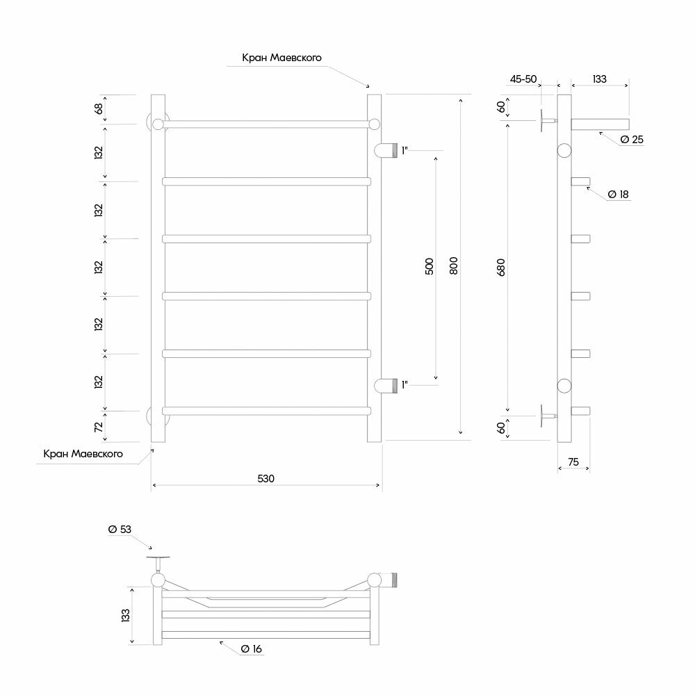 Полотенцесушитель водяной лесенка с боковым правым подключением 500х800 мм информация:
