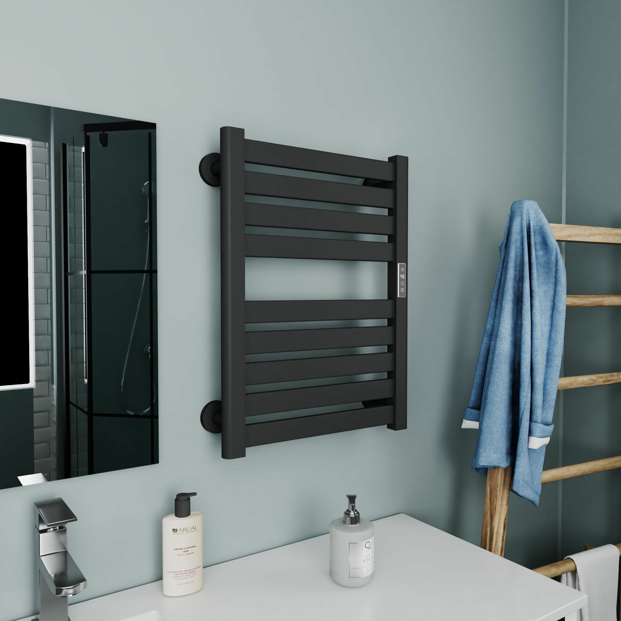 Отзывы на Полотенцесушитель дизайнерский электрический BAU Elite Elegant Black 60х45, подключение справа, черный матовый