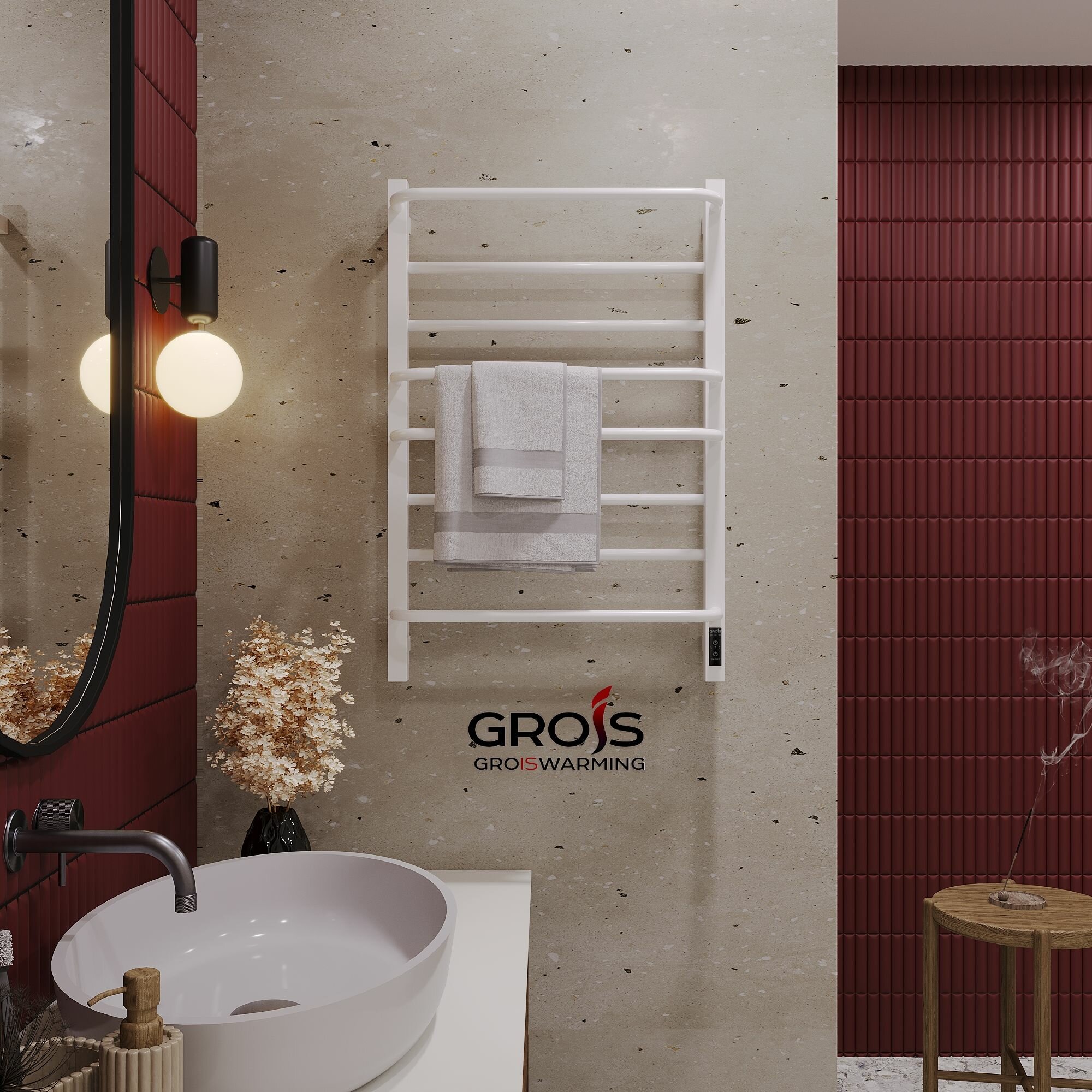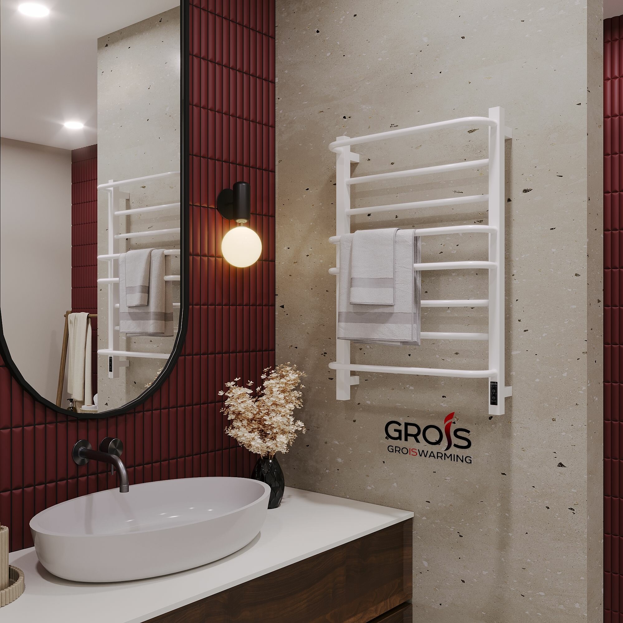 Полотенцесушитель вертикальный GROIS Orso GR-134 1200 черный матовый, диммер справа