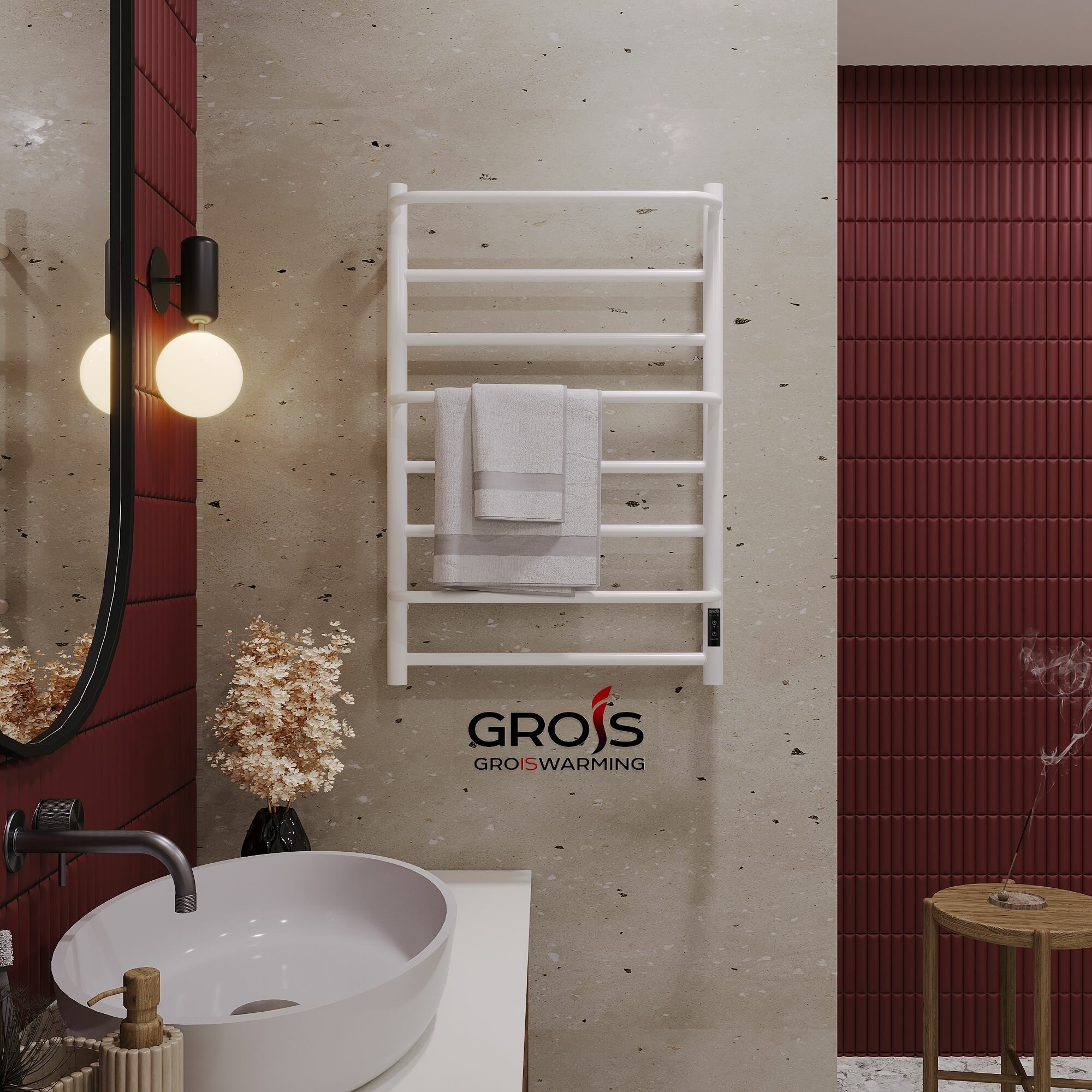 Полотенцесушитель дизайнерский электрический, профильный BAU Stella 8х80, 2 коллектора, 3 крючка (Белый DB-0071)