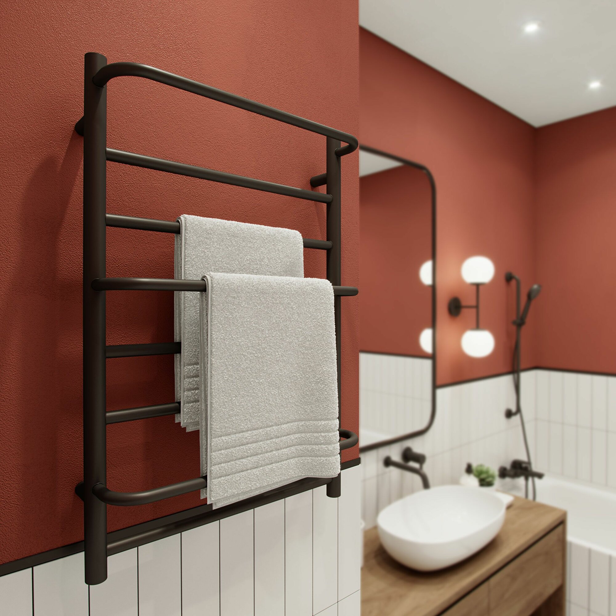 TERMINUS Полотенцесушитель электрический Terminus Хендрикс П6 500x596, ТЭН HT-1 300W, левый/правый