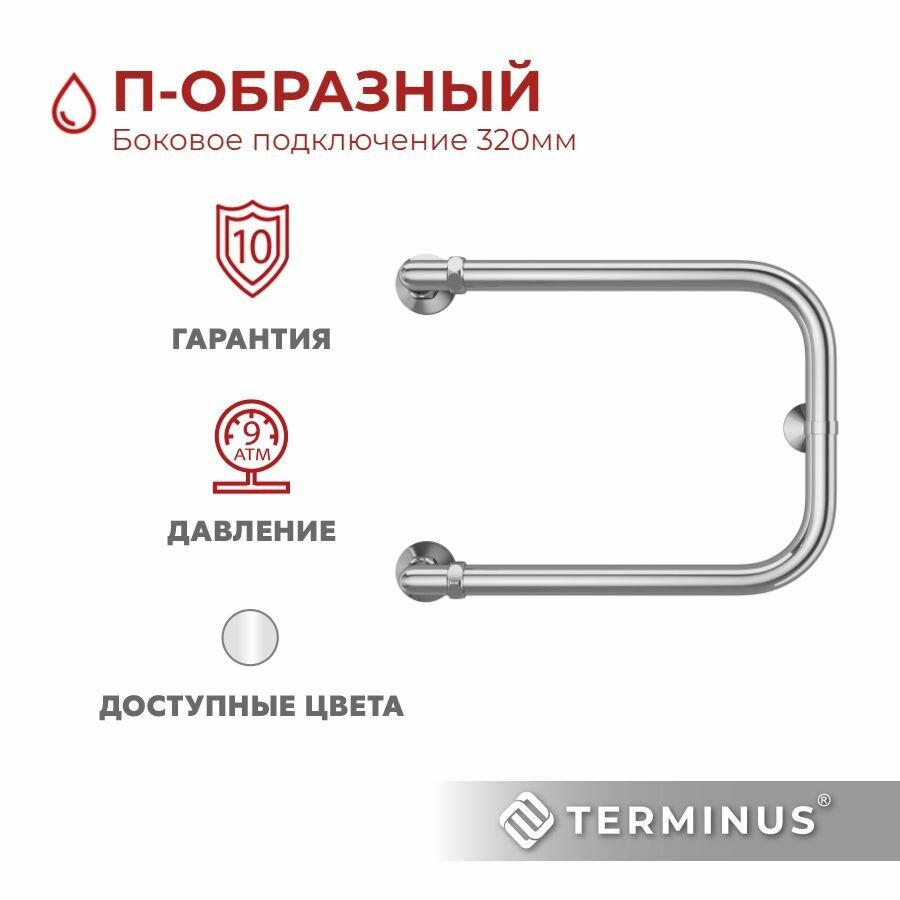 10 цен на Полотенцесушитель водяной TERMINUS (Терминус) П-образный 320х400 мм, боковое подключение 320 мм, гарантия 10 ЛЕТ