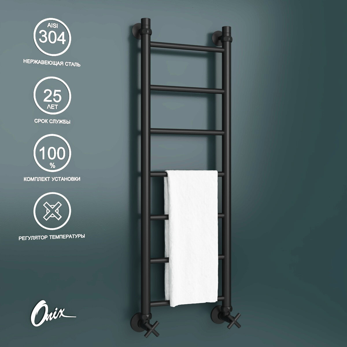 Отзывы на Полотенцесушитель Водяной Onix, модель Classic Pro Black 300x1000 Лесенка с нижним подключением, черный матовый, полный комплект