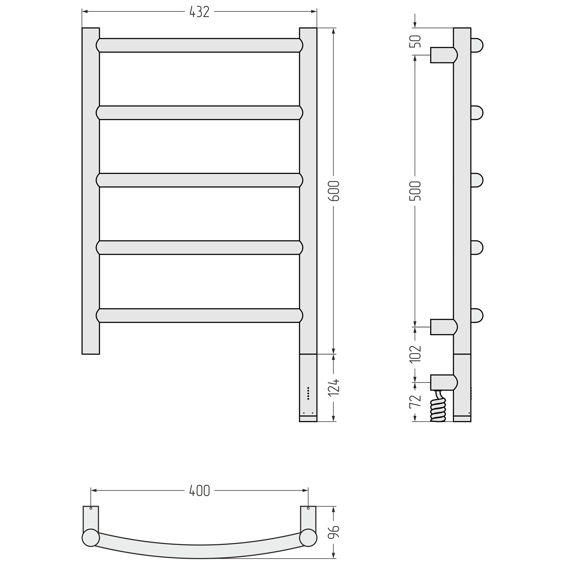 TERMINUS Полотенцесушитель электрический Terminus Хендрикс П6 500x596, ТЭН HT-1 300W, левый/правый