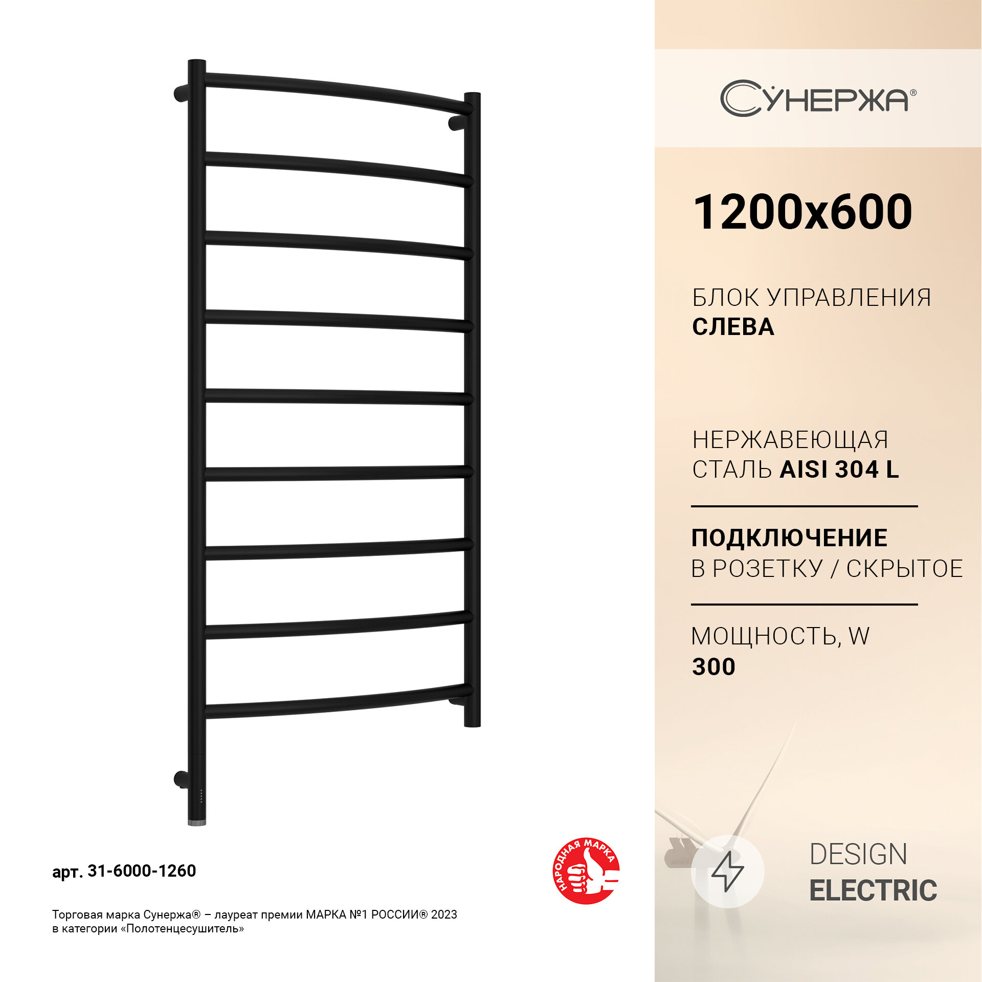 Полотенцесушитель электрический Сунержа Галант 3.1 1200х600 МЭМ левый Матовый чёрный информация: