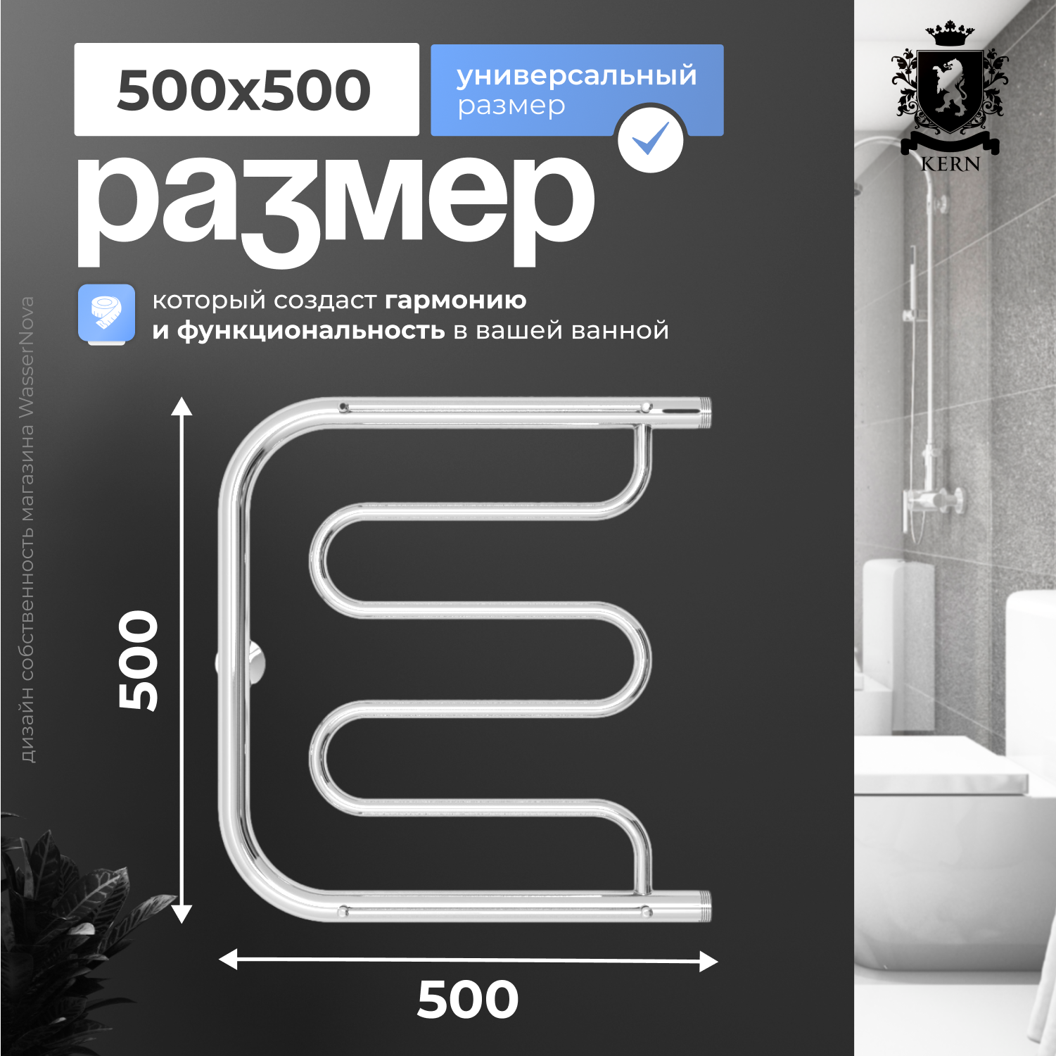 Полотенцесушитель настенный водяной с боковым правым подключением 500x500 мм информация:
