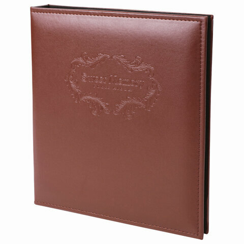 Фотоальбом магнитный Brauberg, на 120 фотографий 10х15см, 20 листов, 23х28см, обложка под кожу, на кольцах, коричневый (390492)