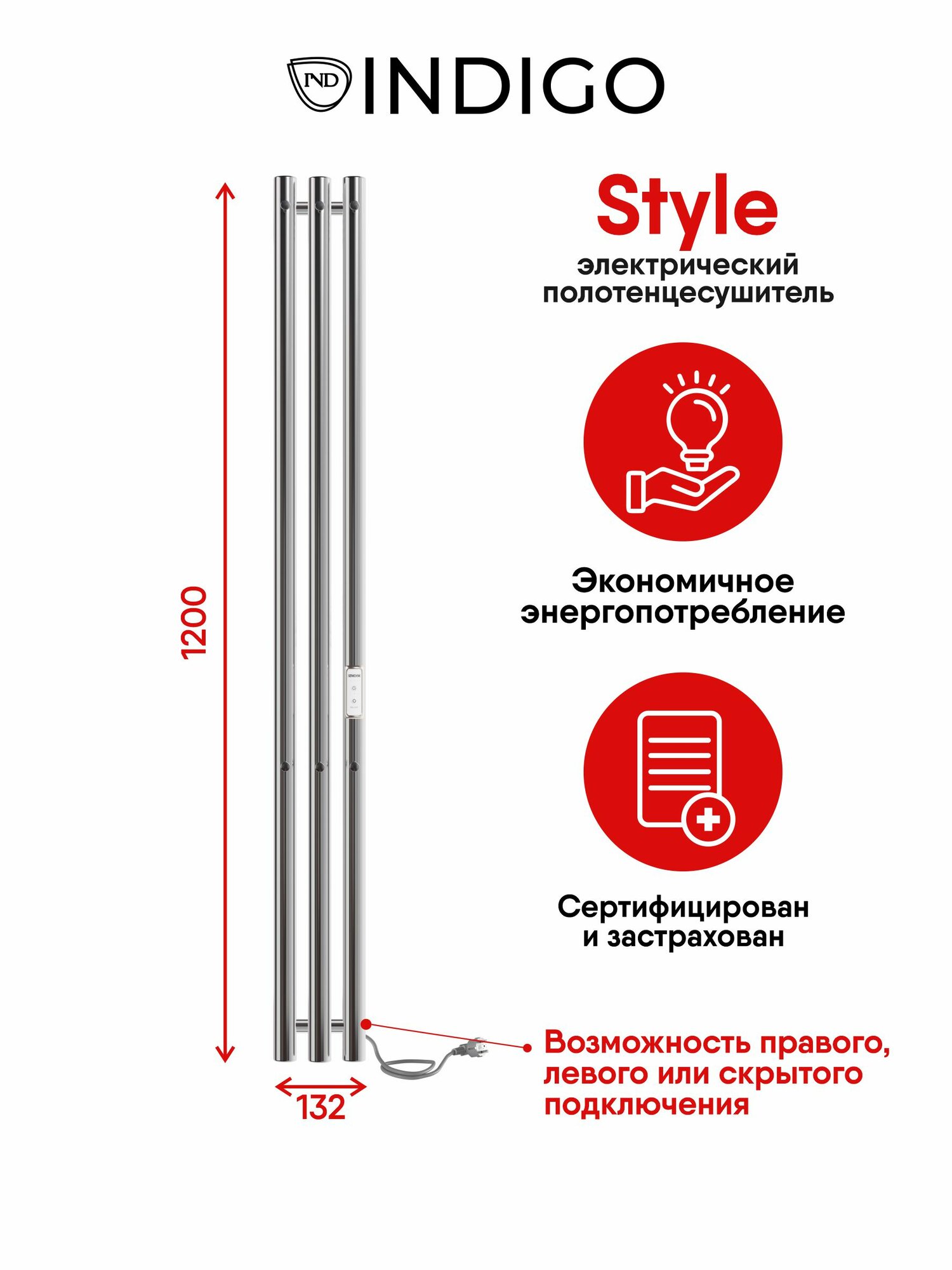 10 цен на Полотенцесушитель электрический узкий INDIGO 120/13, терморегулятор, труба вертикальная