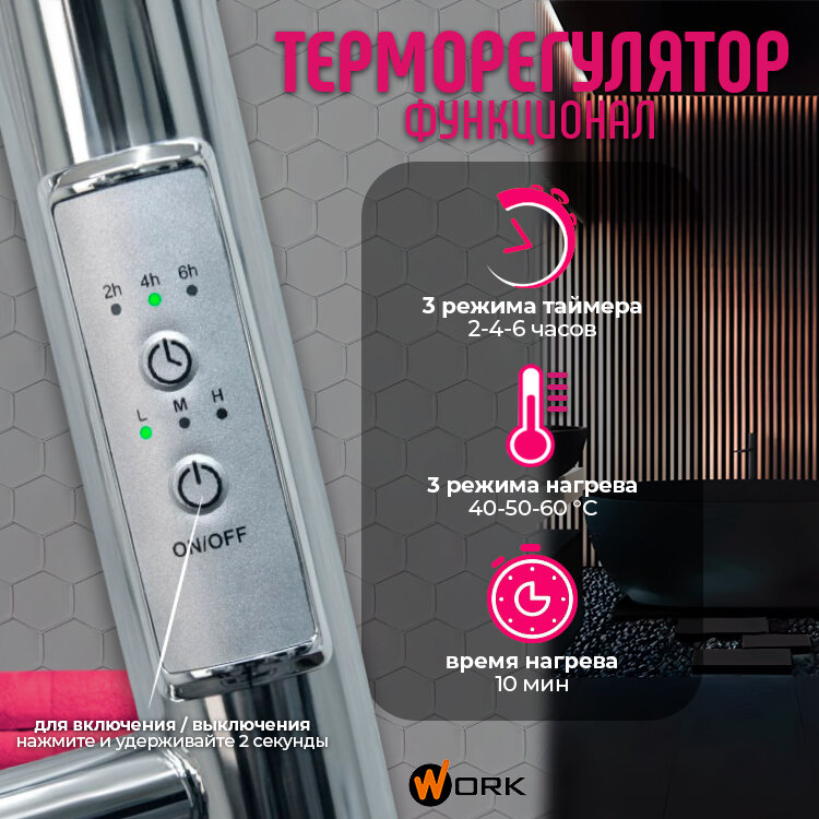 Полотенцесушитель электрический WORK-Оливер 80x50 в ванную с терморегулятором, хром, универсальное подключение информация: