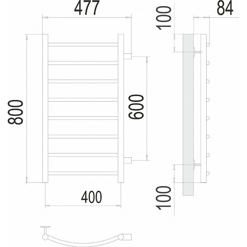 Полотенцесушитель Водяной узкий с полкой Di Kron, модель Premium-T 800х400 боковое подключение 50 см слева угловое