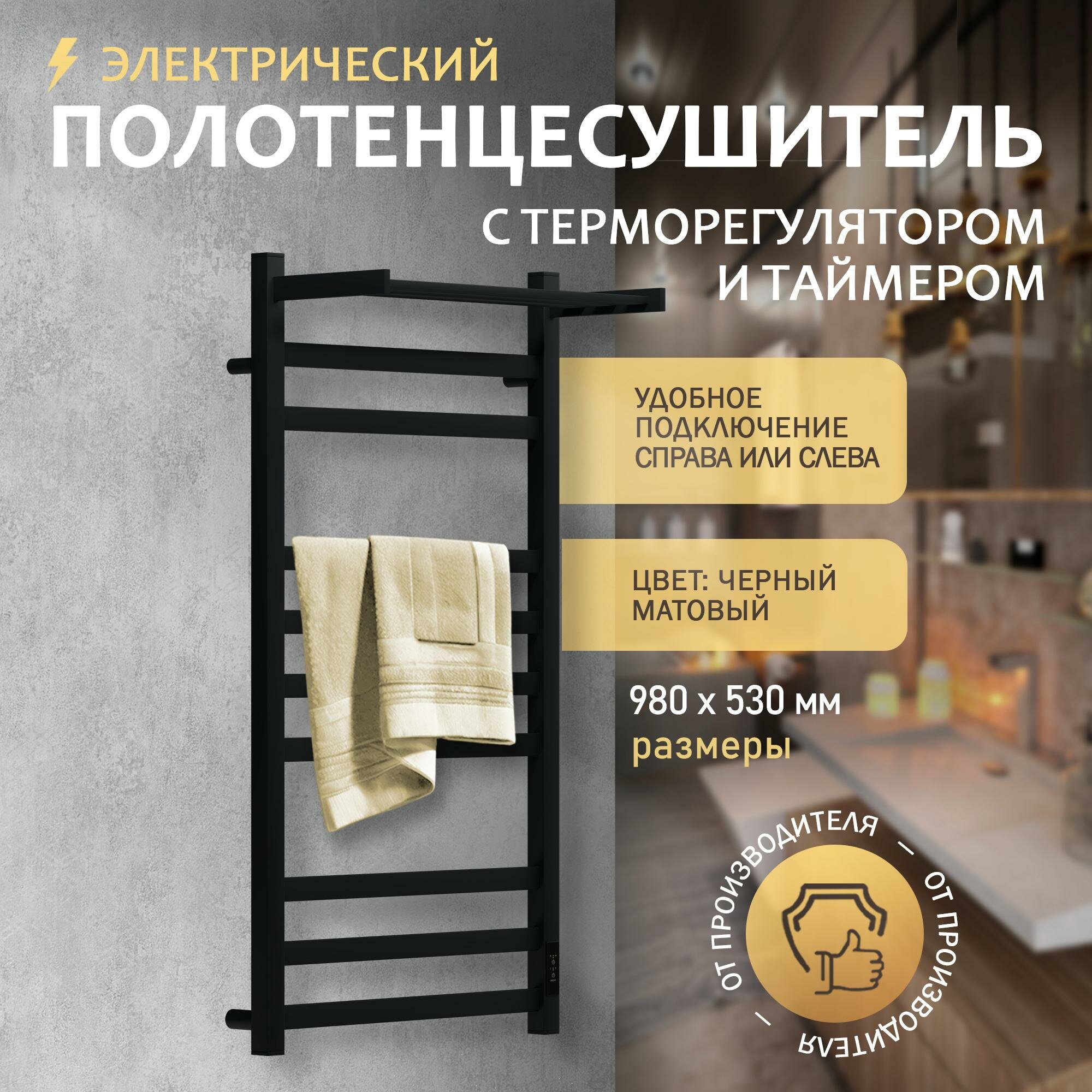 10 цен на Полотенцесушитель электрический Point Palladium PNPD850PB П9 500x980 с полкой, диммер справа, черный