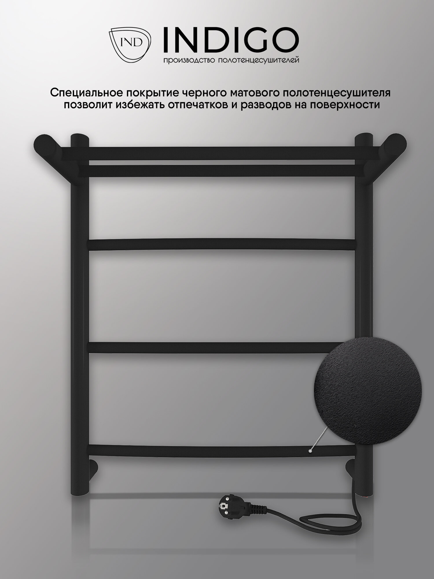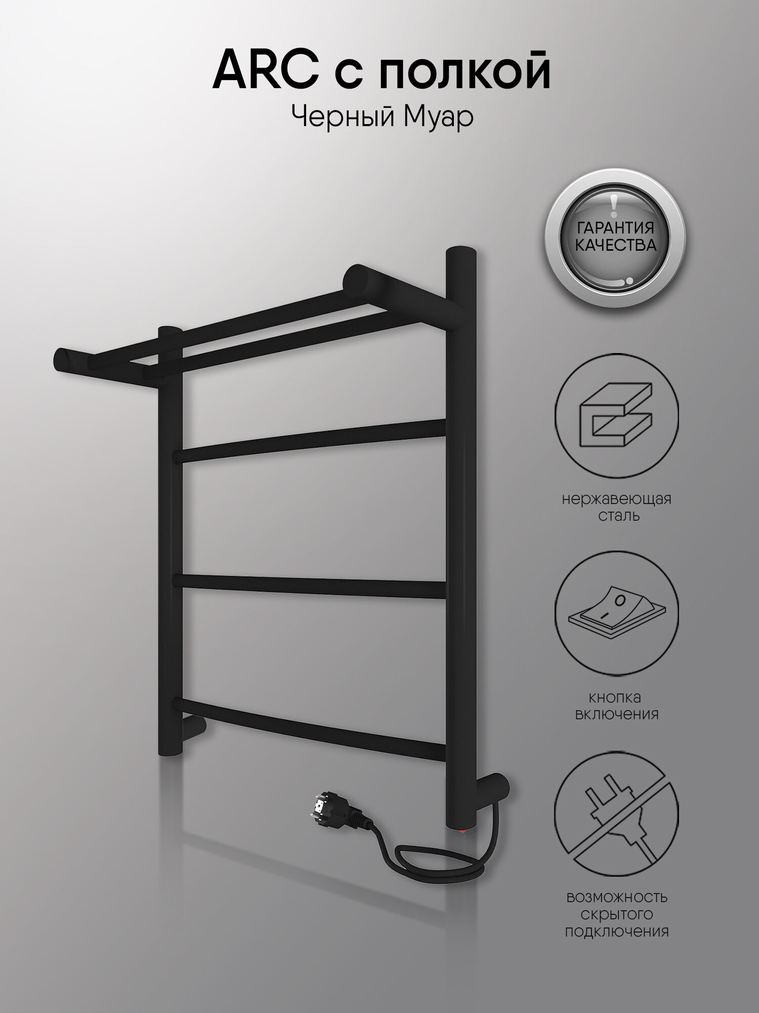 Полотенцесушитель Arc с полкой электрический 50/40 скрытый монтаж, универсальное подключение, Черный муар INDIGO информация: