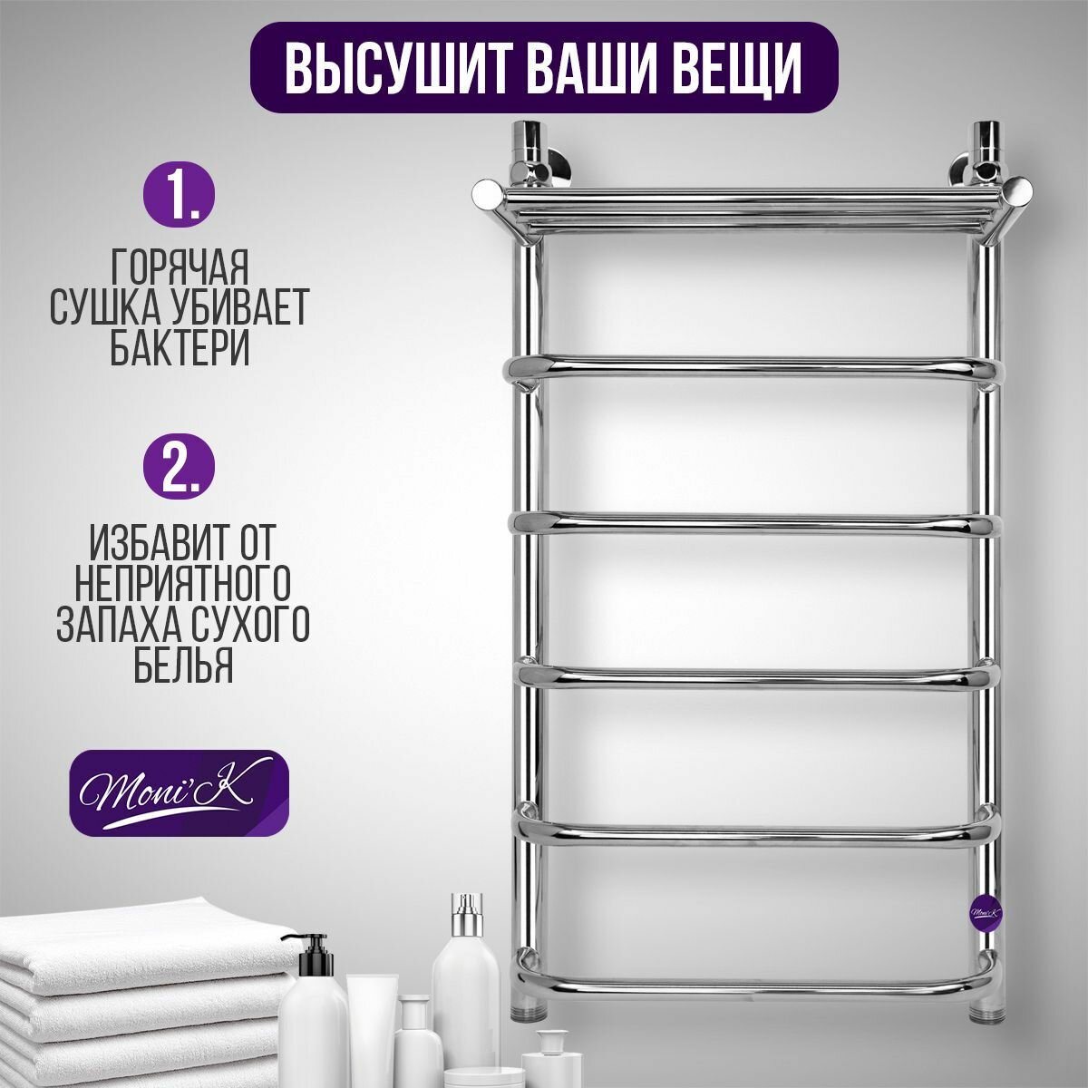 Отзывы на Полотенцесушитель водяной с полкой Moni'K, нижнее подключение, 40х80 см, нержавеющая сталь, хром
