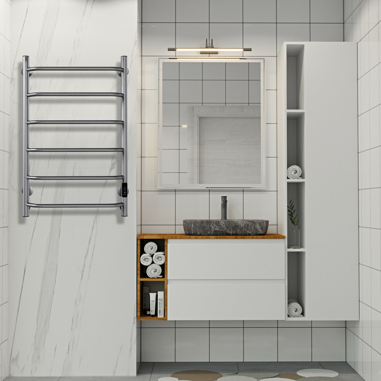 Полотенцесушитель электрический INDIGO Roof Lux 80/50 таймер, скрытый монтаж, универсальное подключение, Черный муар