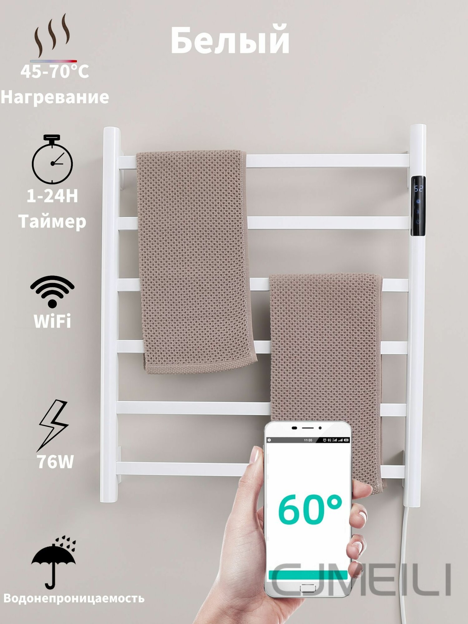 Отзывы на Полотенцесушитель Электрический в ванной комнате, нержавеющая сталь 6 стержней, Белый