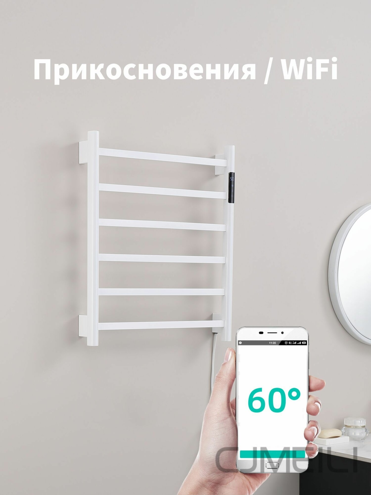 Полотенцесушитель Электрический в ванной комнате, нержавеющая сталь 6 стержней, Белый информация: