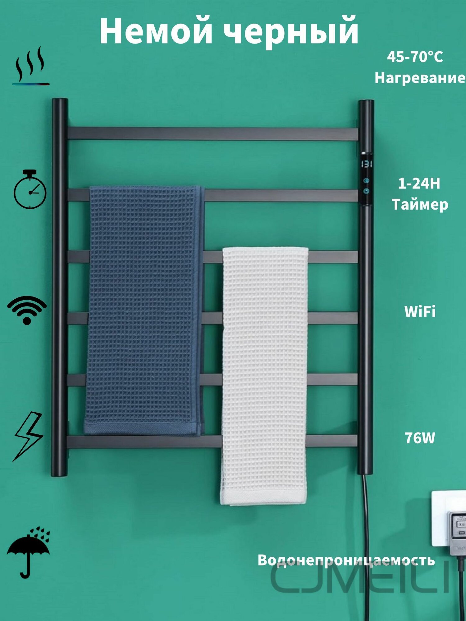Полотенцесушитель Электрический в ванной комнате, нержавеющая сталь 6 стержней, Немой черный информация: