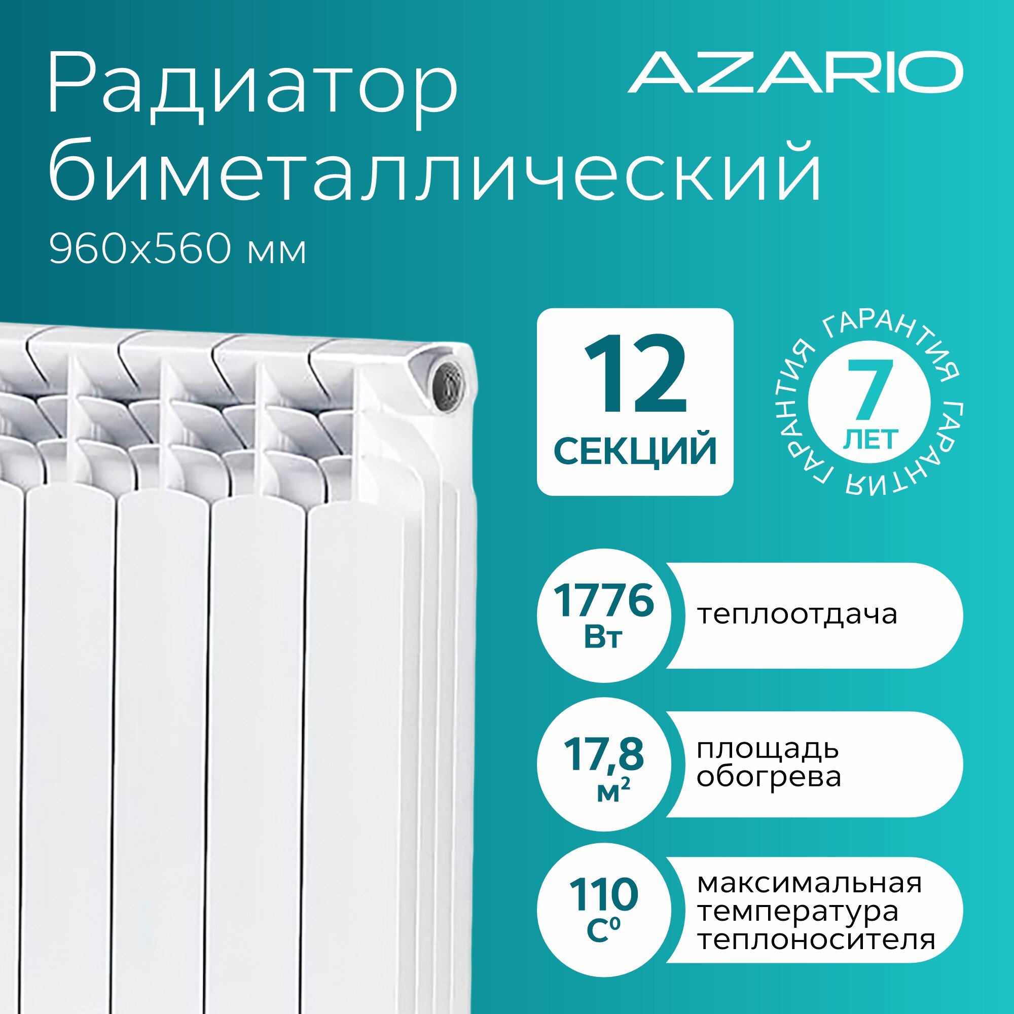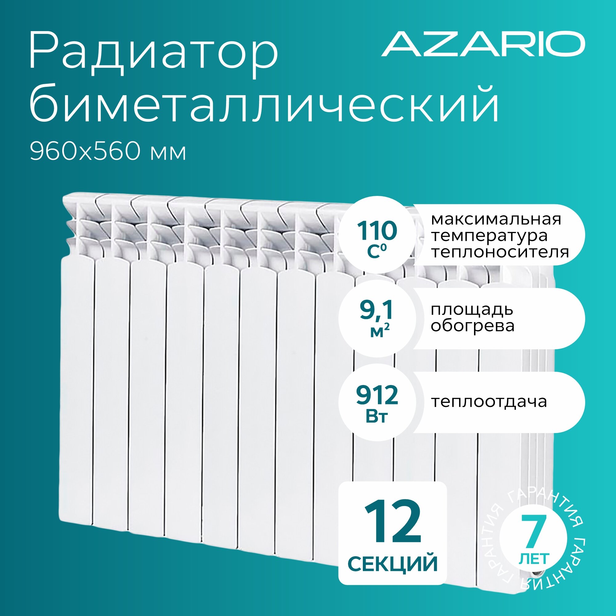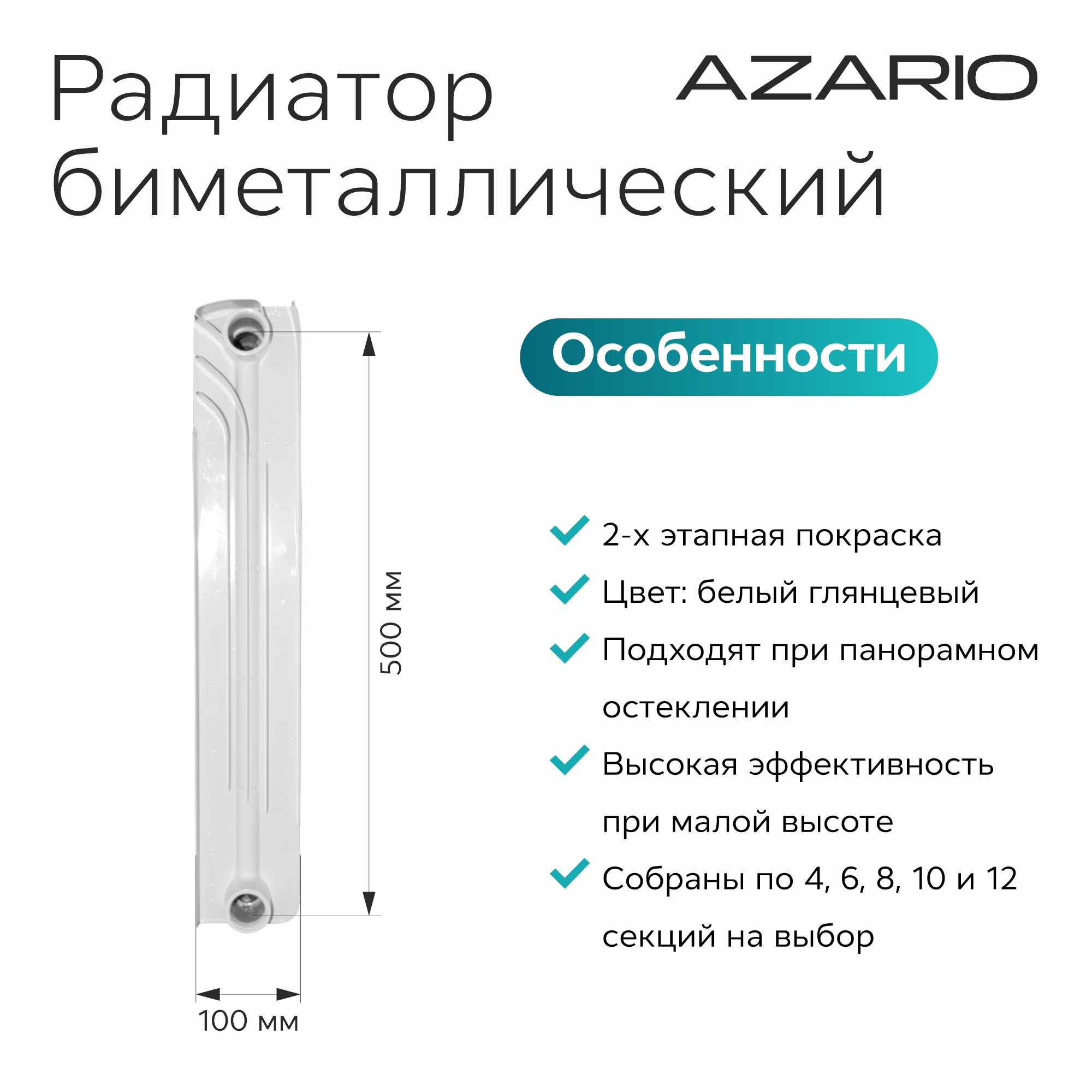 Радиатор биметаллический AZARIO BM500/100 12 секций, BM500/100/12 информация: