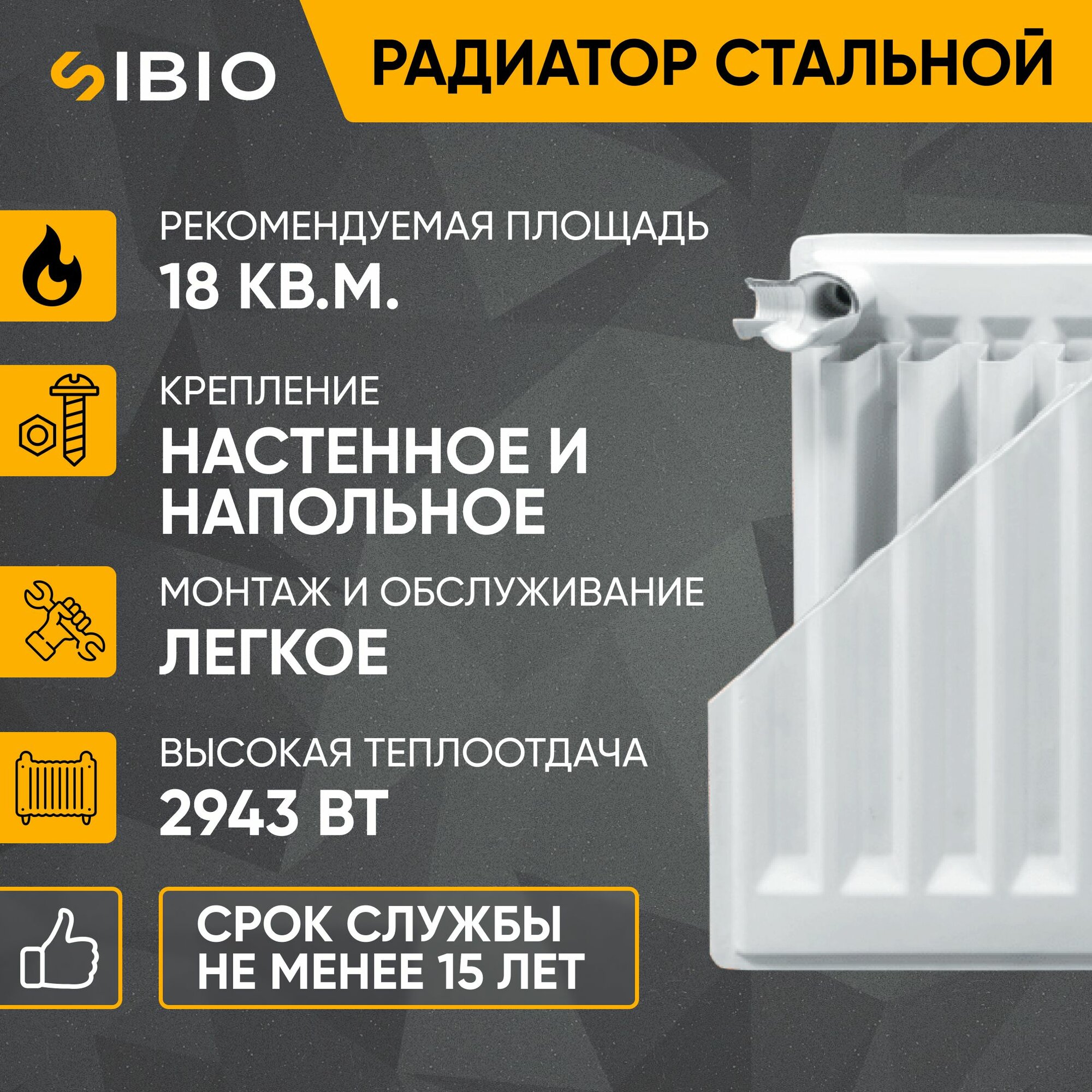 Радиатор отопления стальной универсальный Sibio 22 300х1800 информация: