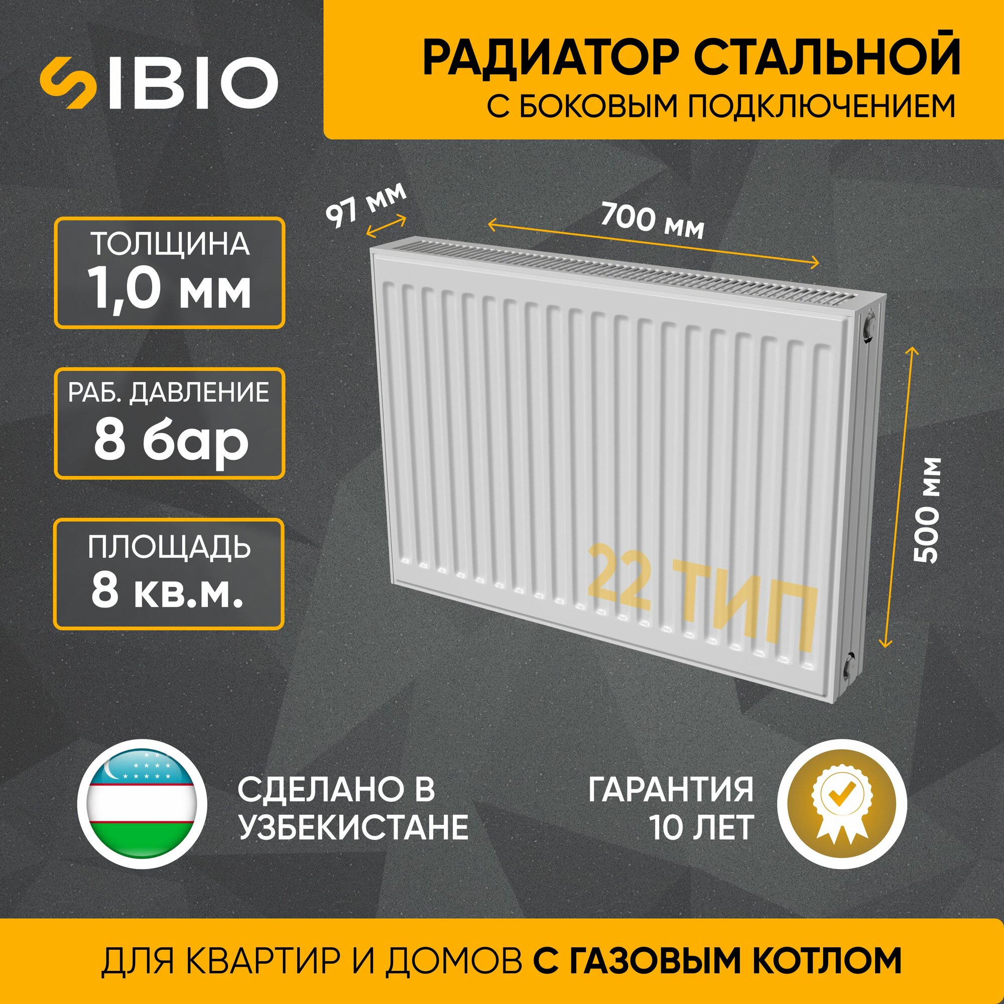 Радиатор стальной Sibio 22 500х700 боковое подключение информация: