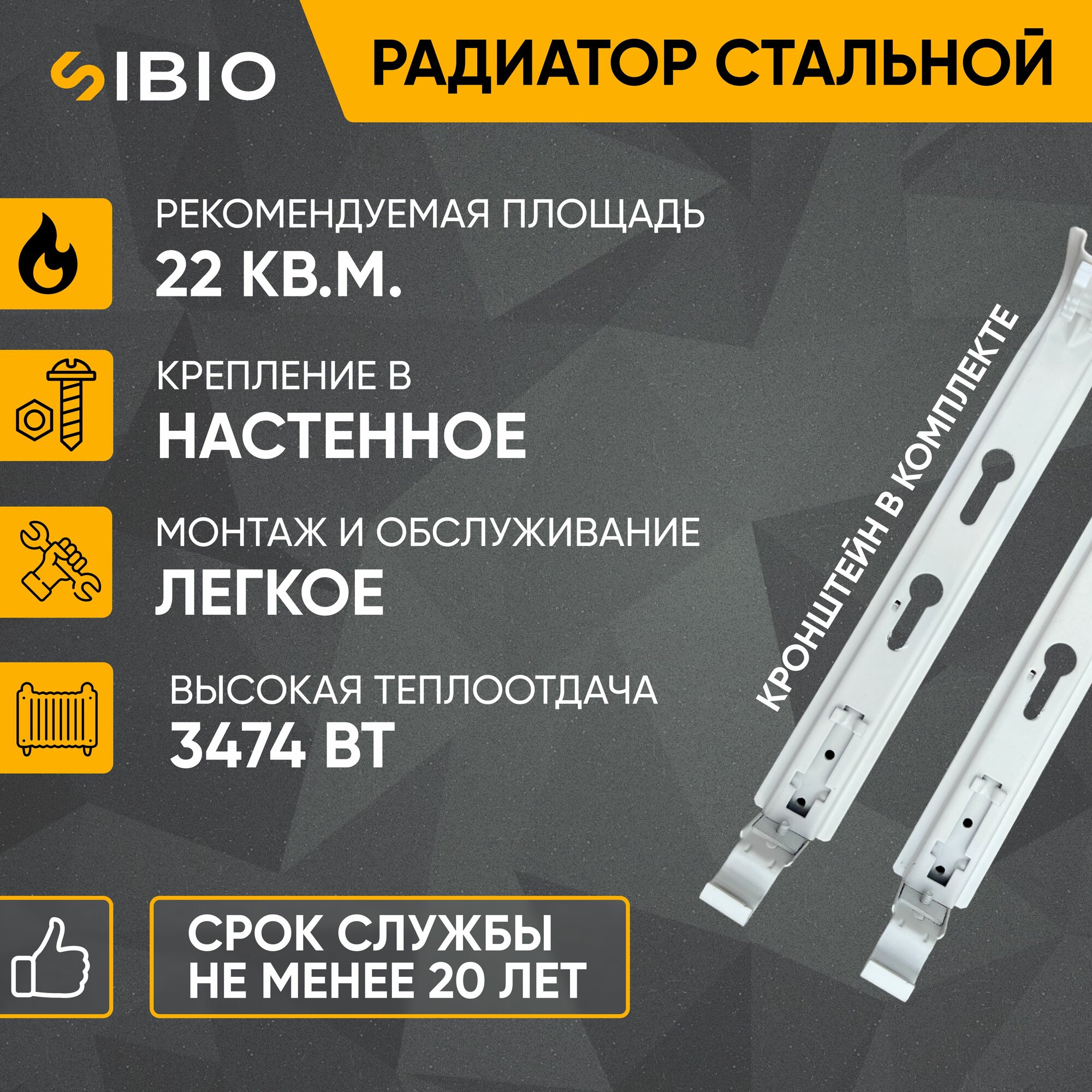 Радиатор стальной Sibio 22 500х1800 боковое подключение информация:
