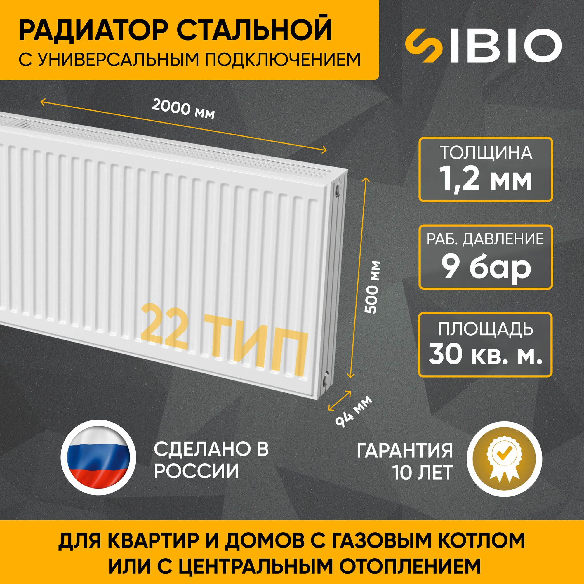 Радиатор отопления стальной универсальный Sibio 22 500х2000 информация: