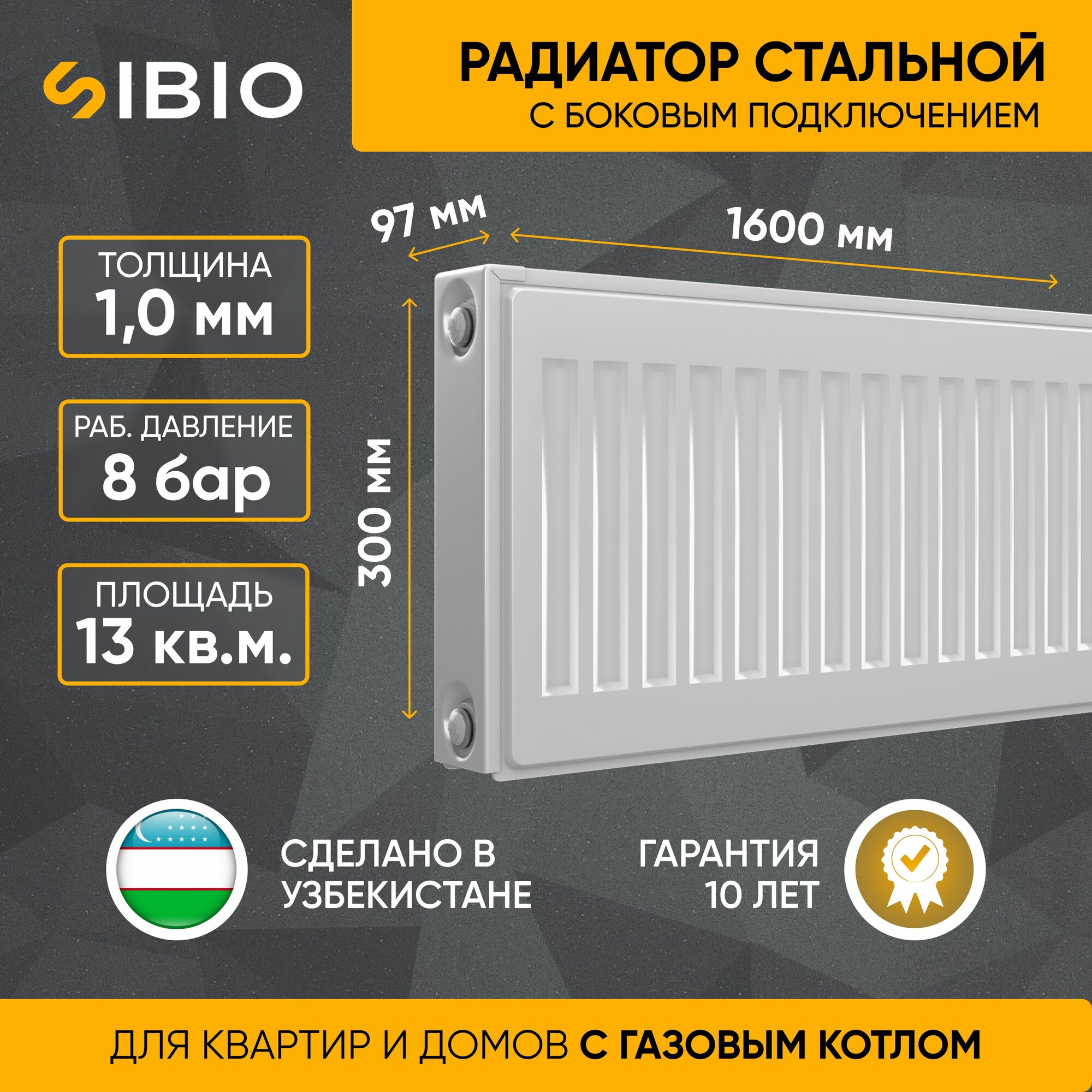 Радиатор стальной Sibio 22 300х1600 боковое подключение информация: