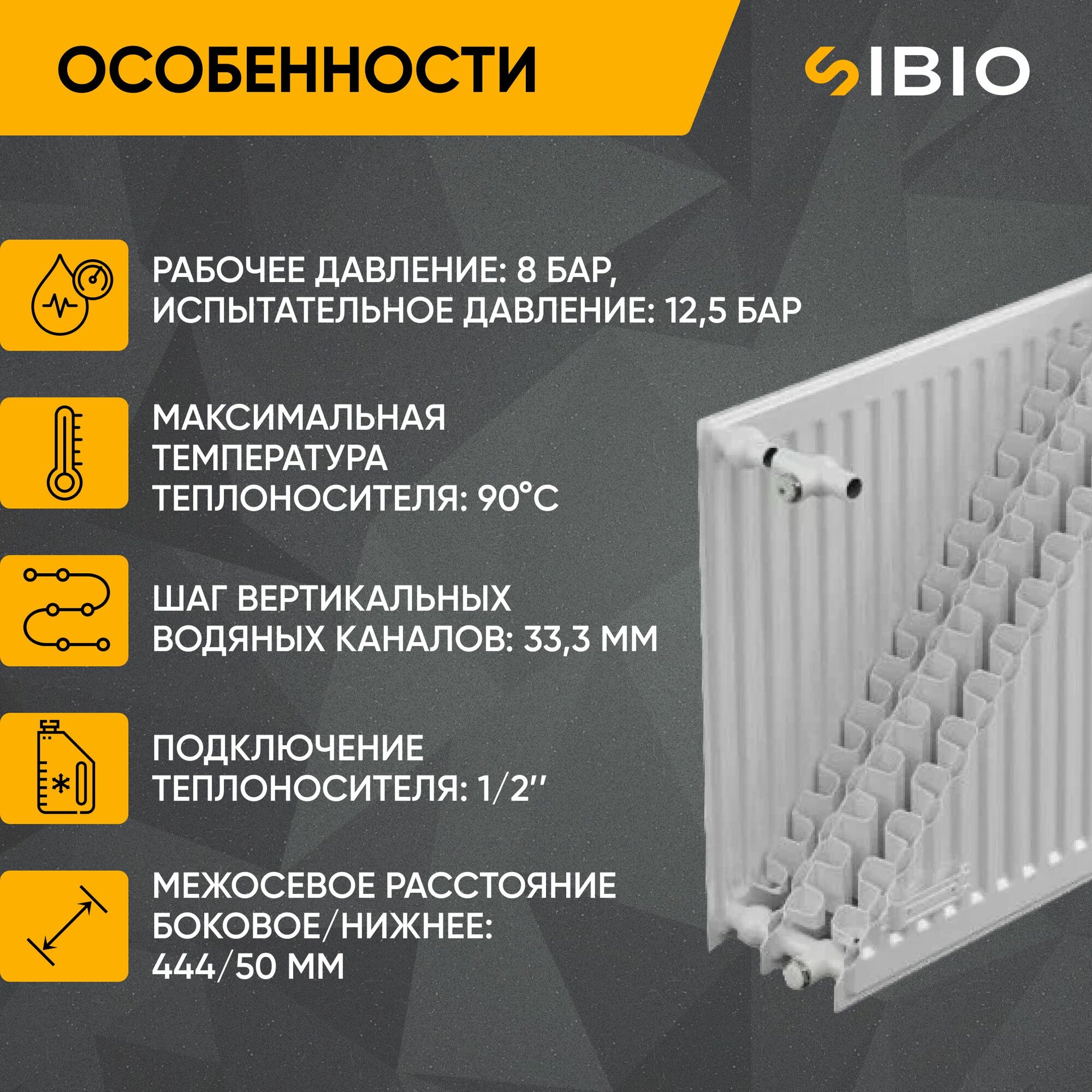 Радиатор стальной Sibio 22 300х1900 боковое подключение информация: