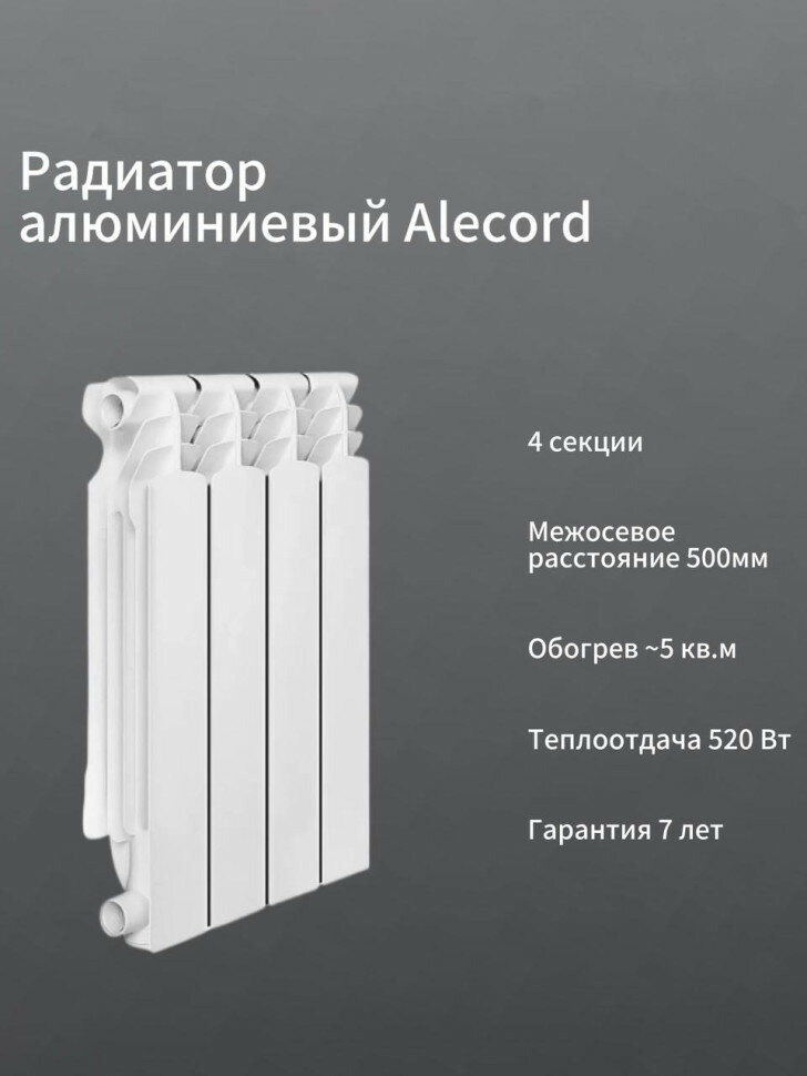 Радиатор алюминиевый ALECORD 500/80/4 (0.52 кВт) информация: