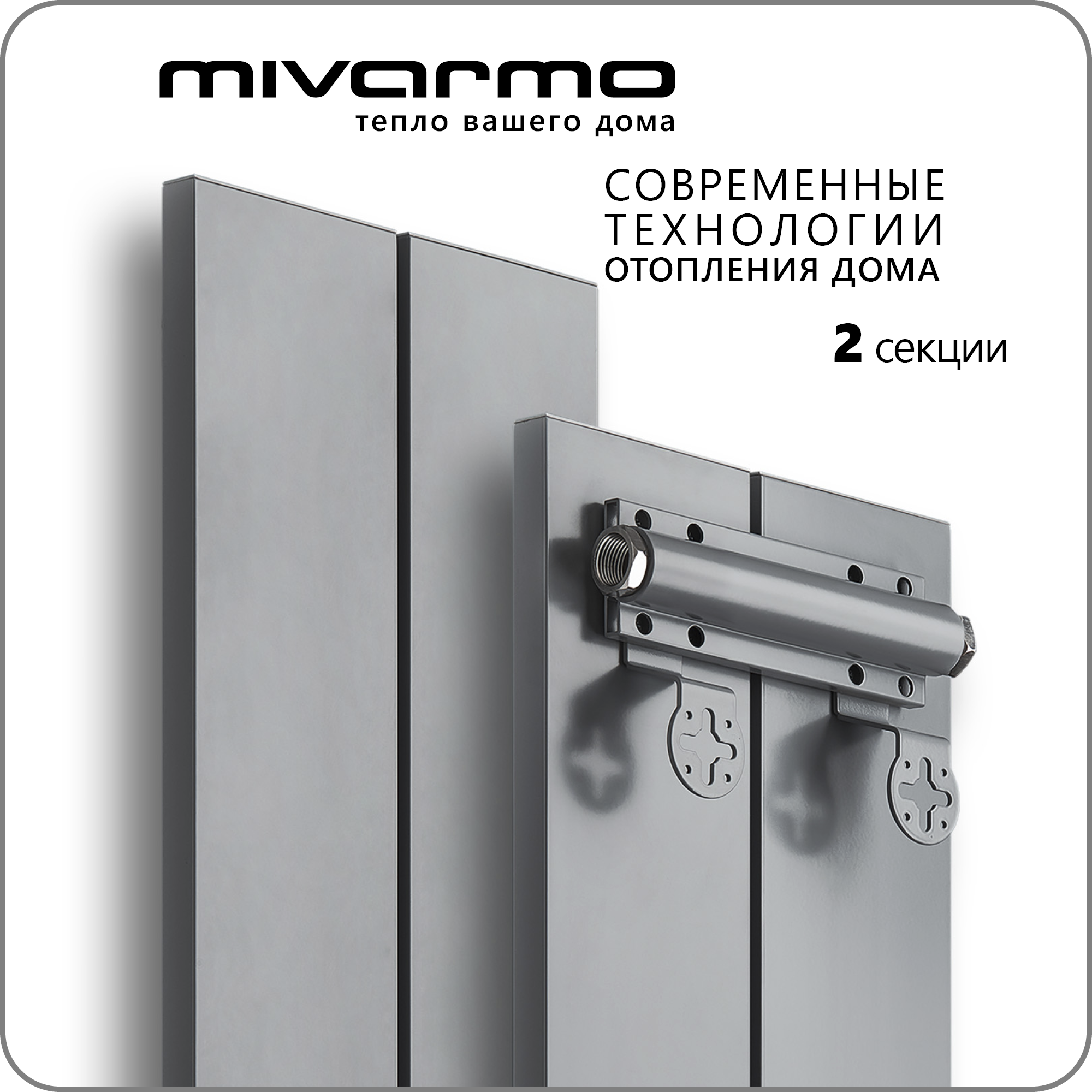 Секционный радиатор отопления Mivarmo 2 секции, горизонтальное/вертикальное подключение 150 см (серебристый матовый) информация: