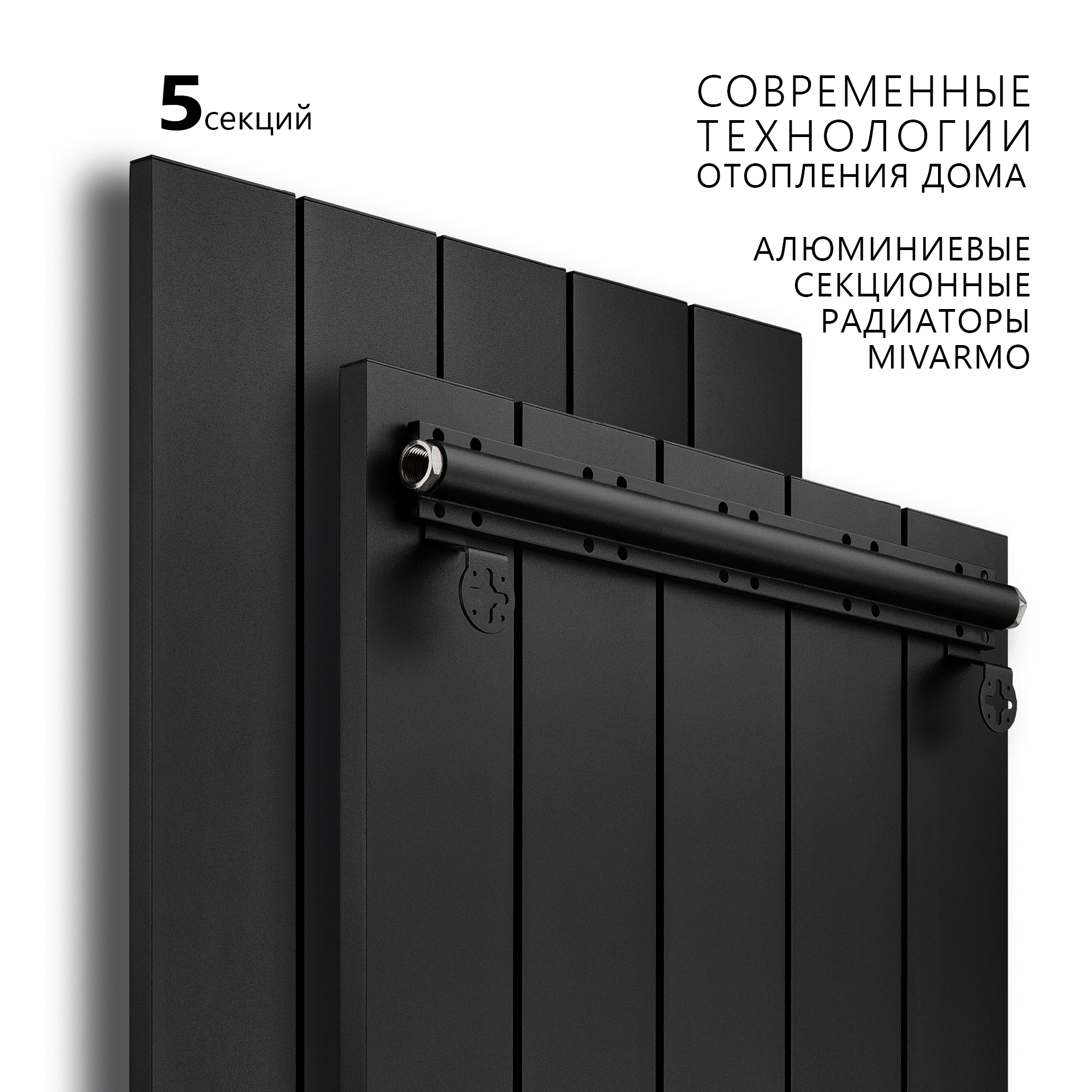 Секционный радиатор отопления Mivarmo 5 секций, горизонтальное/вертикальное подключение 200 см (черный муар) информация: