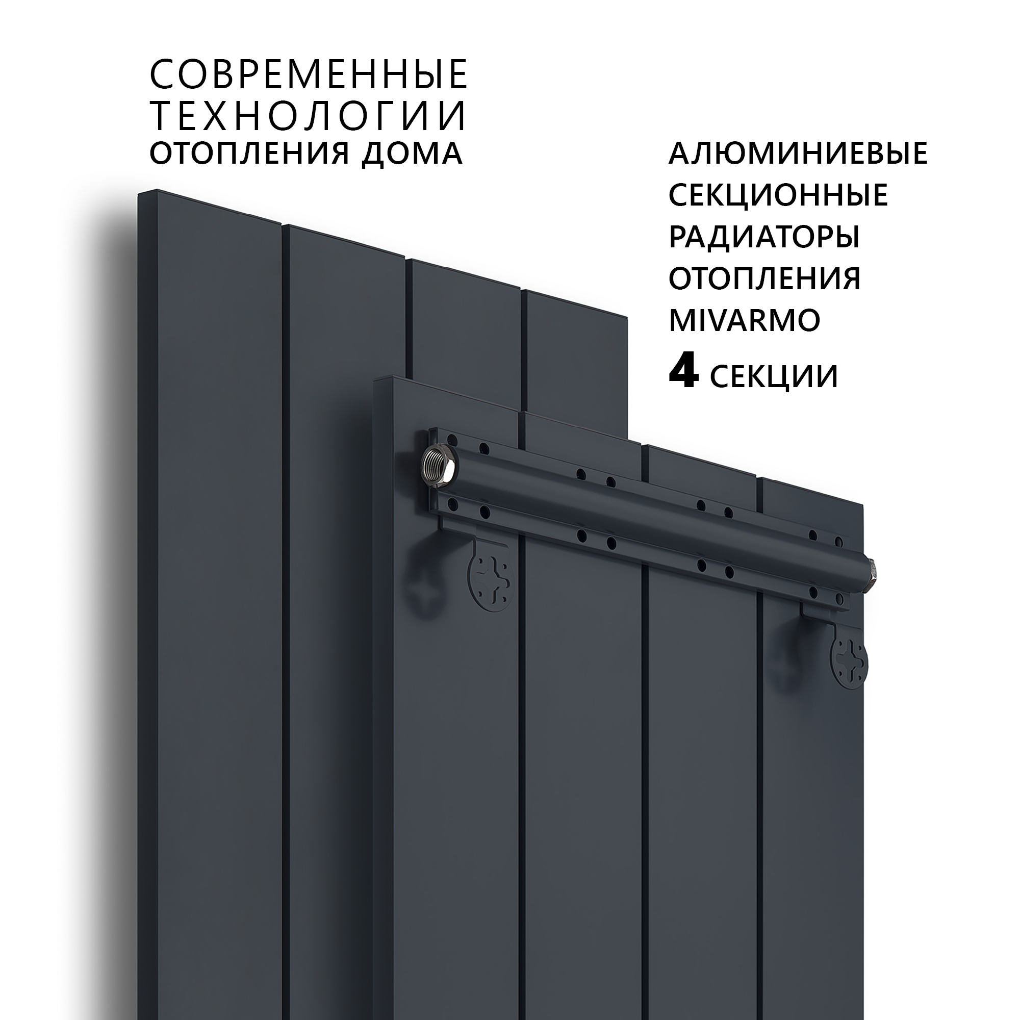 Секционный радиатор отопления Mivarmo 4 секции, горизонтальное/вертикальное подключение 150 см (графитовый муар) информация:
