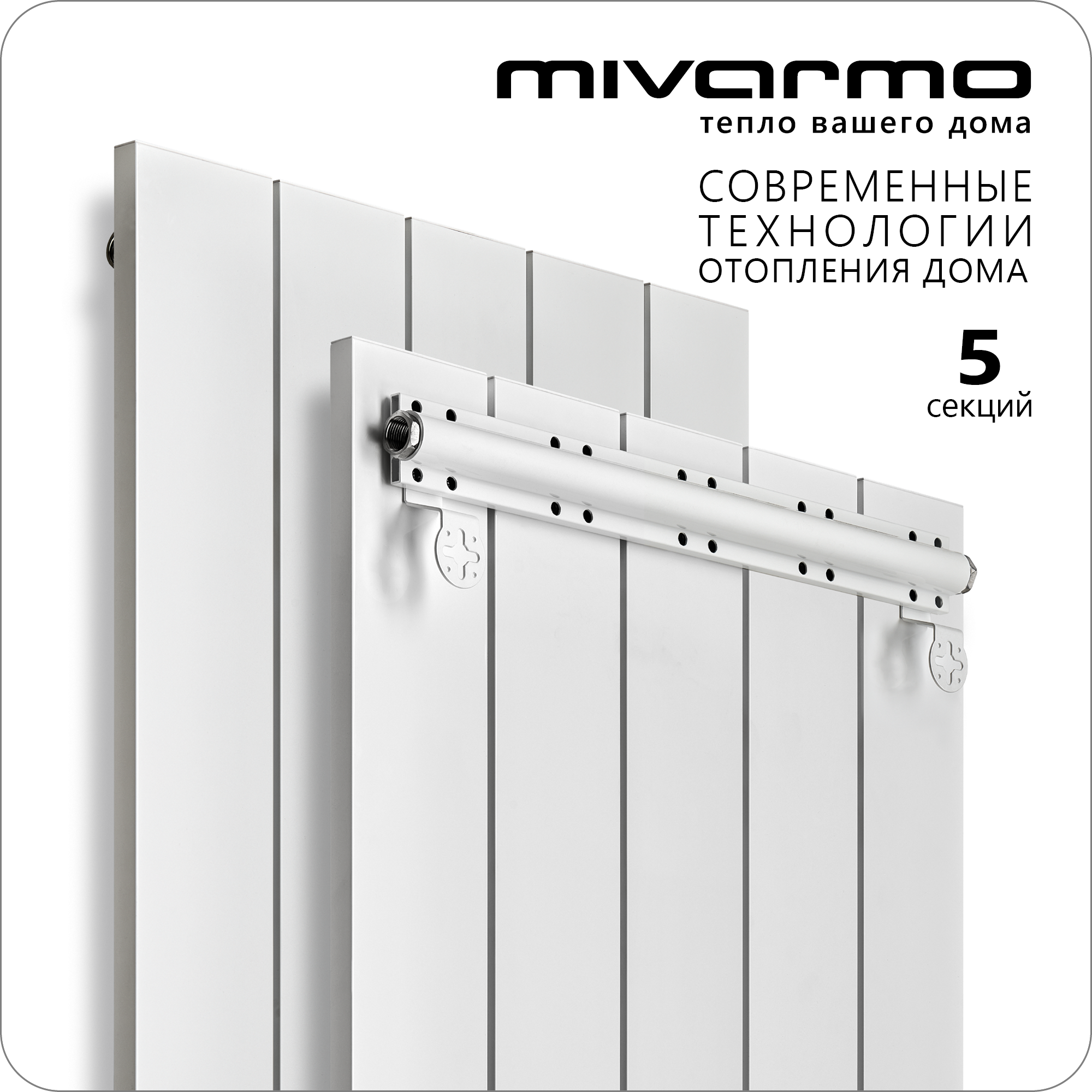 Секционный радиатор отопления Mivarmo 5 секций, горизонтальное/вертикальное подключение 175 см (белый матовый) информация: