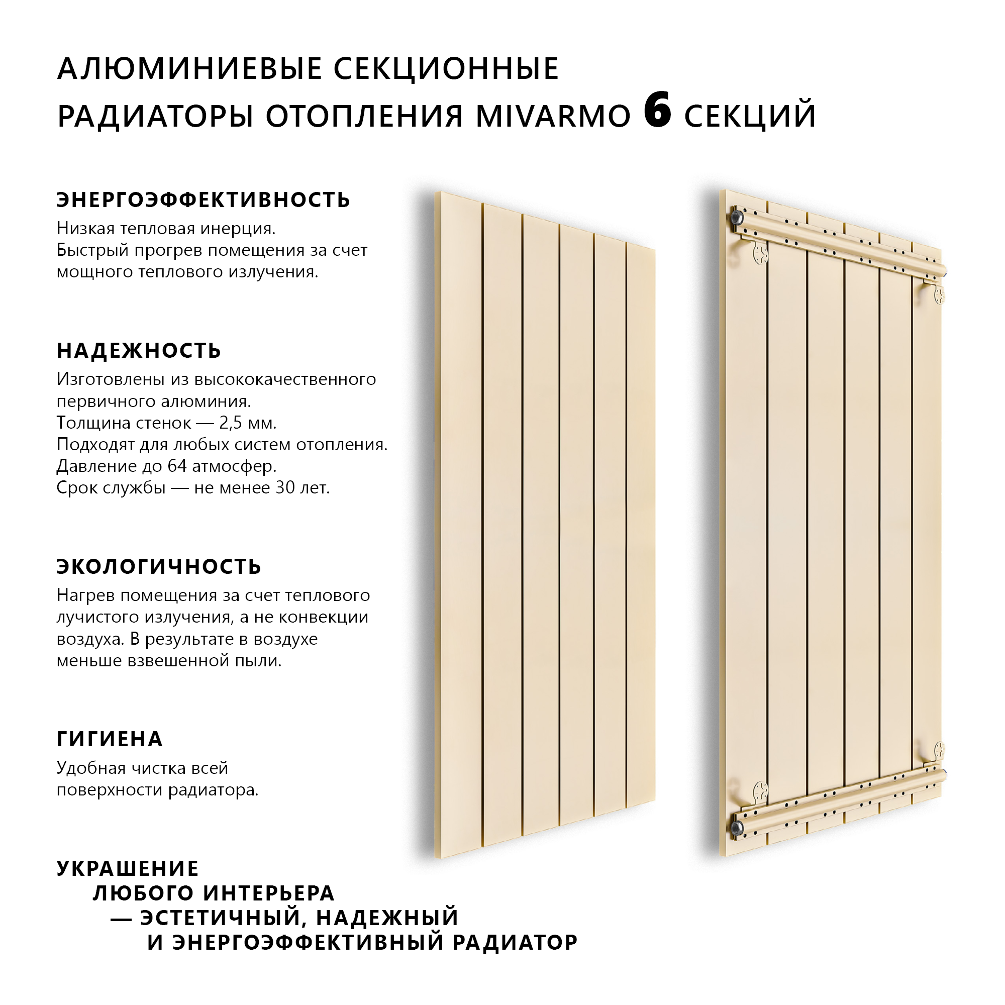 Секционный радиатор отопления Mivarmo 6 секций, горизонтальное/вертикальное подключение 200 см (жемчужно-белый) информация: